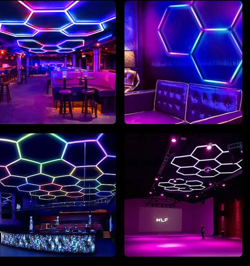 Lumières LED de garage:Hexagone de lumière de RVB LED