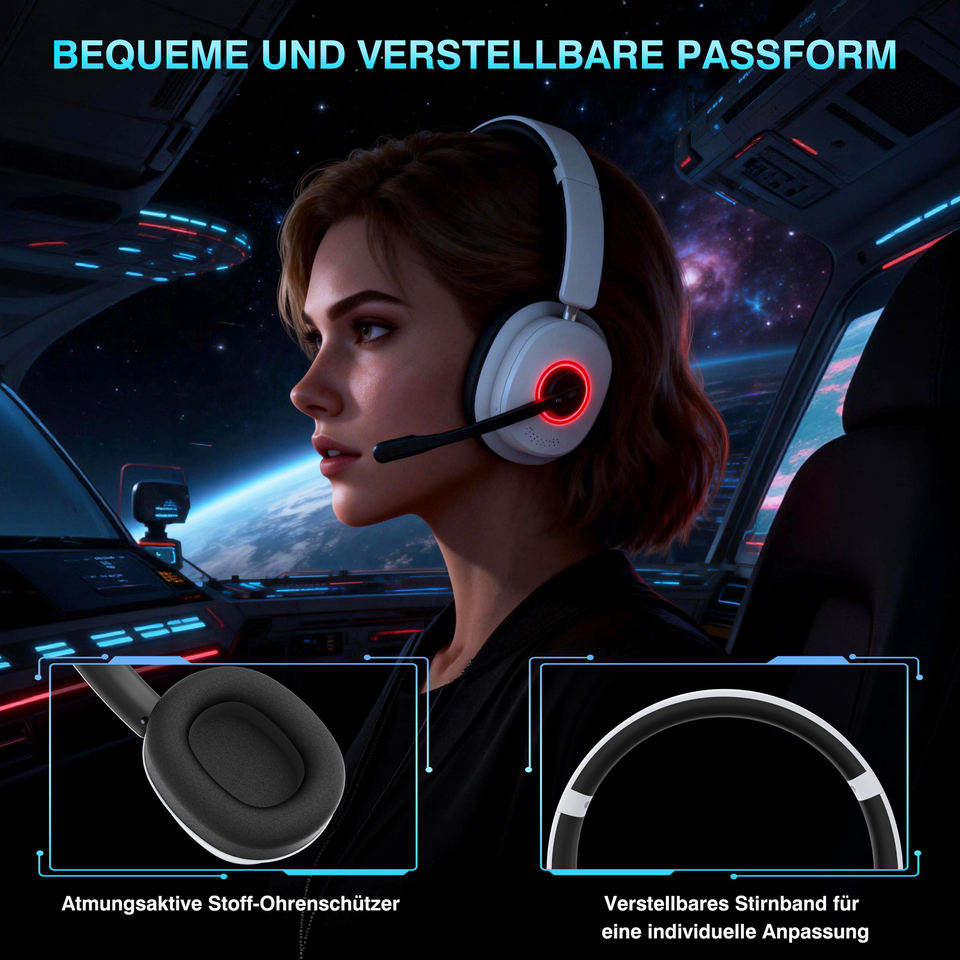 Casque de jeu sans fil RGB avec micro ENC, tri-mode BT5.3/2.4G/3.5mm, double connexion pour PS5 PS4 Switch PC Mac