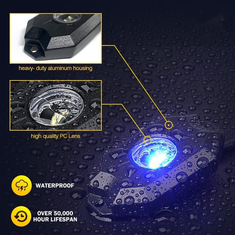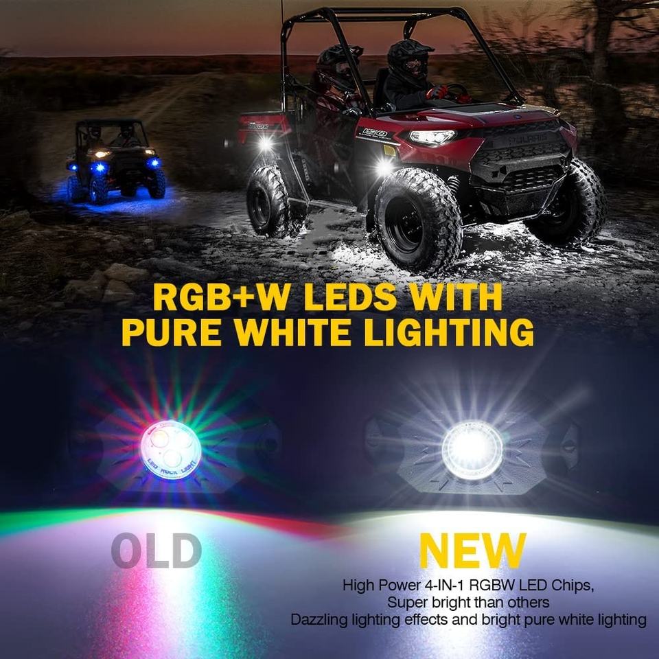 Feux LED RGBW pour roche, 4/6/8/12 modules, boîtier métallique IP67, éclairage sous châssis pour camions, Jeep, UTV, ATV, voiturettes de golf, tout-terrain, SXS