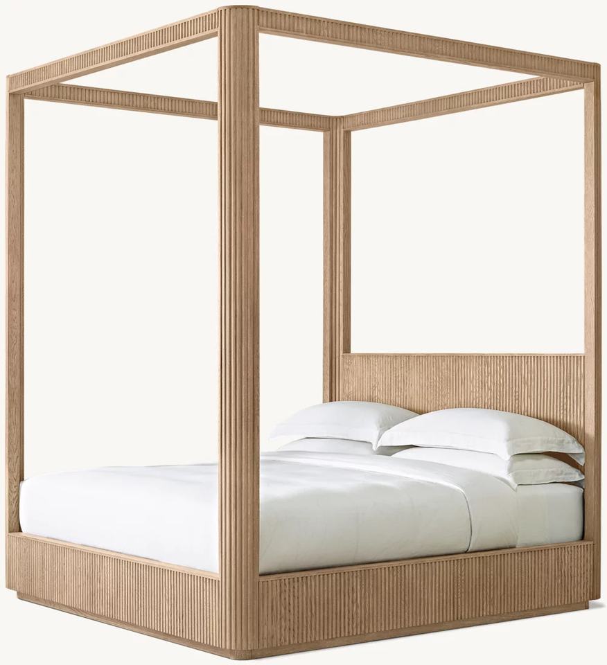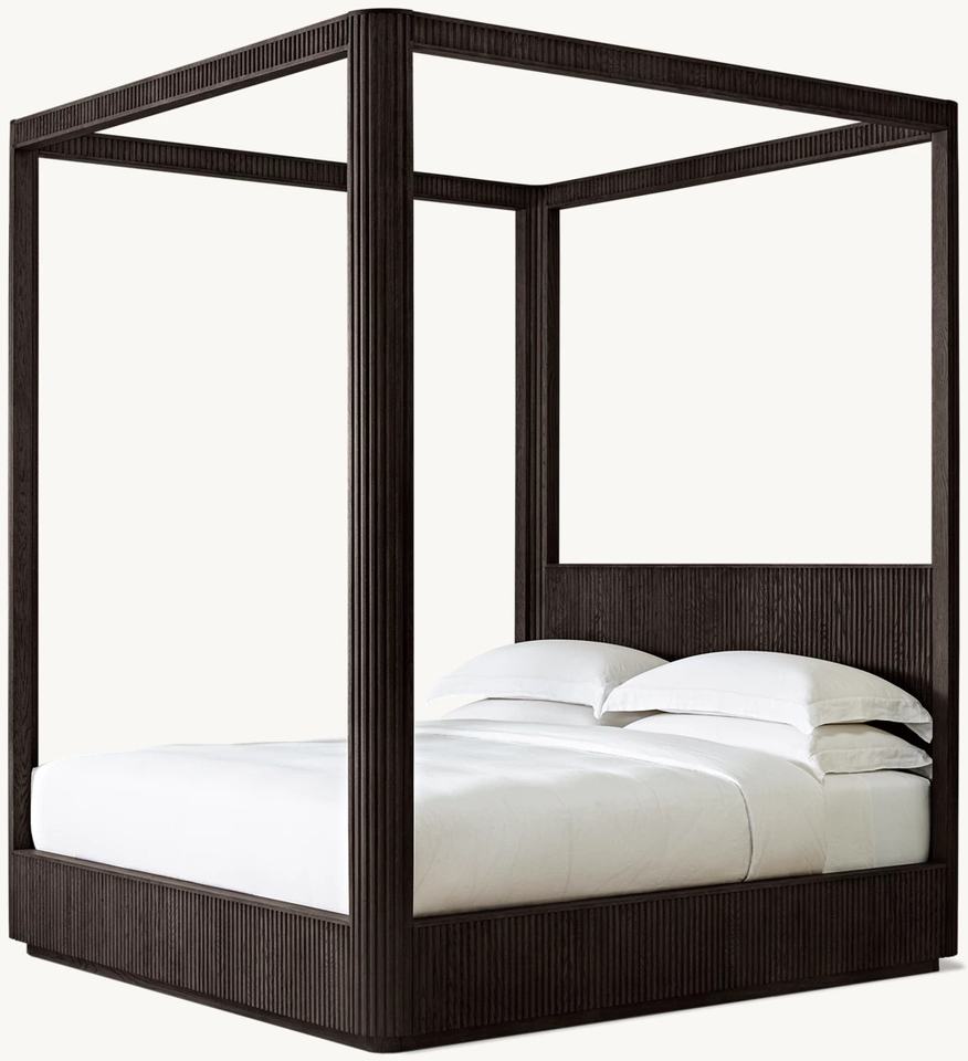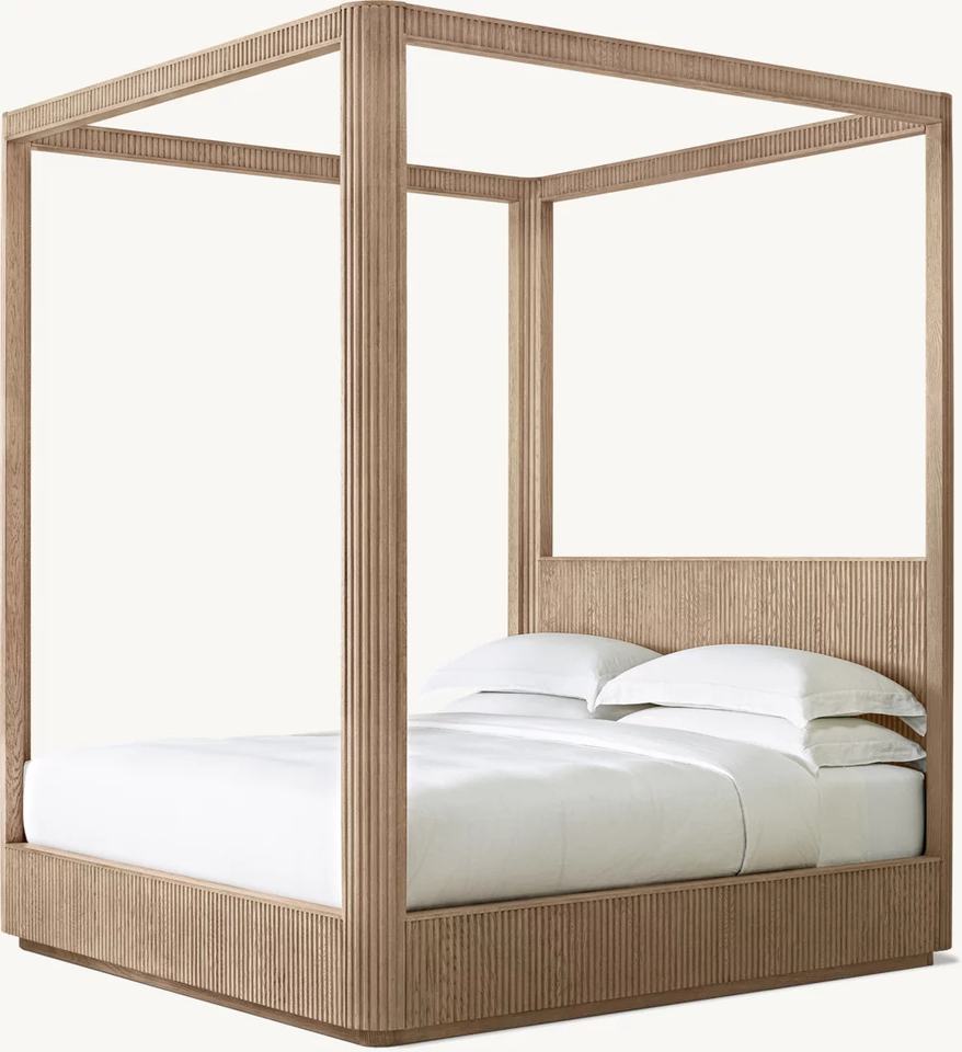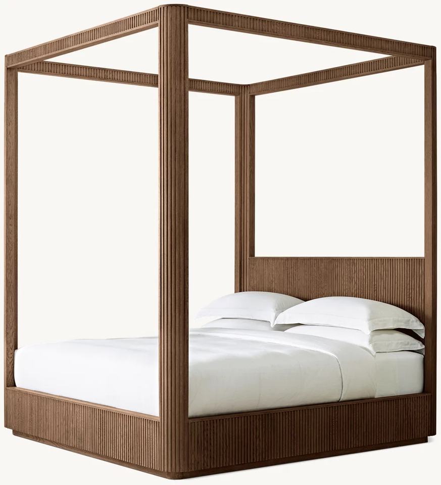 Lit double en bois massif de style américain rétro, lit à baldaquin, lit de mariage pour chambre principale