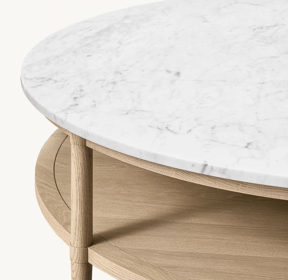 RH FRANCOIS Table basse ronde Cadre en chêne massif avec dessus en bois ou en marbre Utilisation intérieure et extérieure moderne pour salon Patio