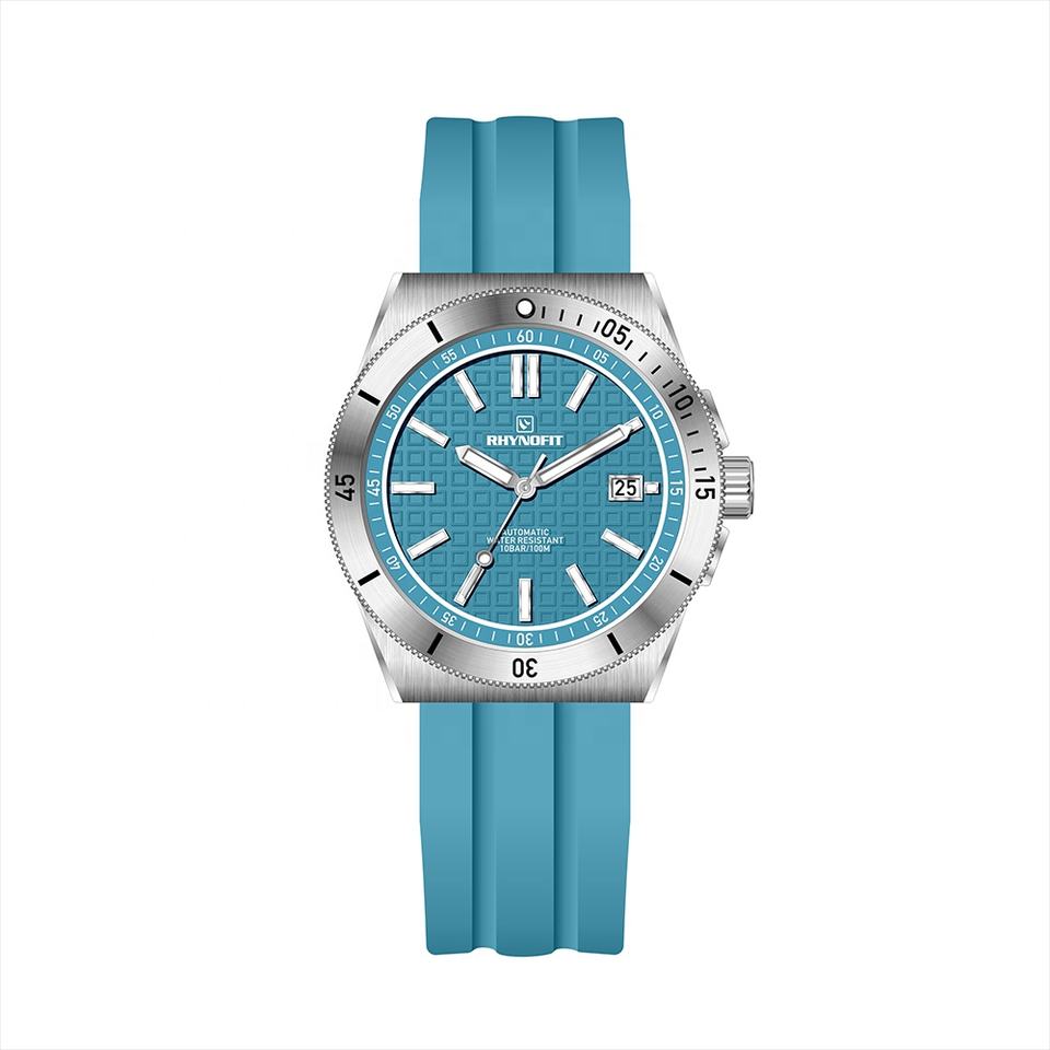 Montre mécanique automatique pour homme RHYNOFIT, boîtier et bracelet en acier inoxydable 316L, finition brossée, étanche 10 ATM