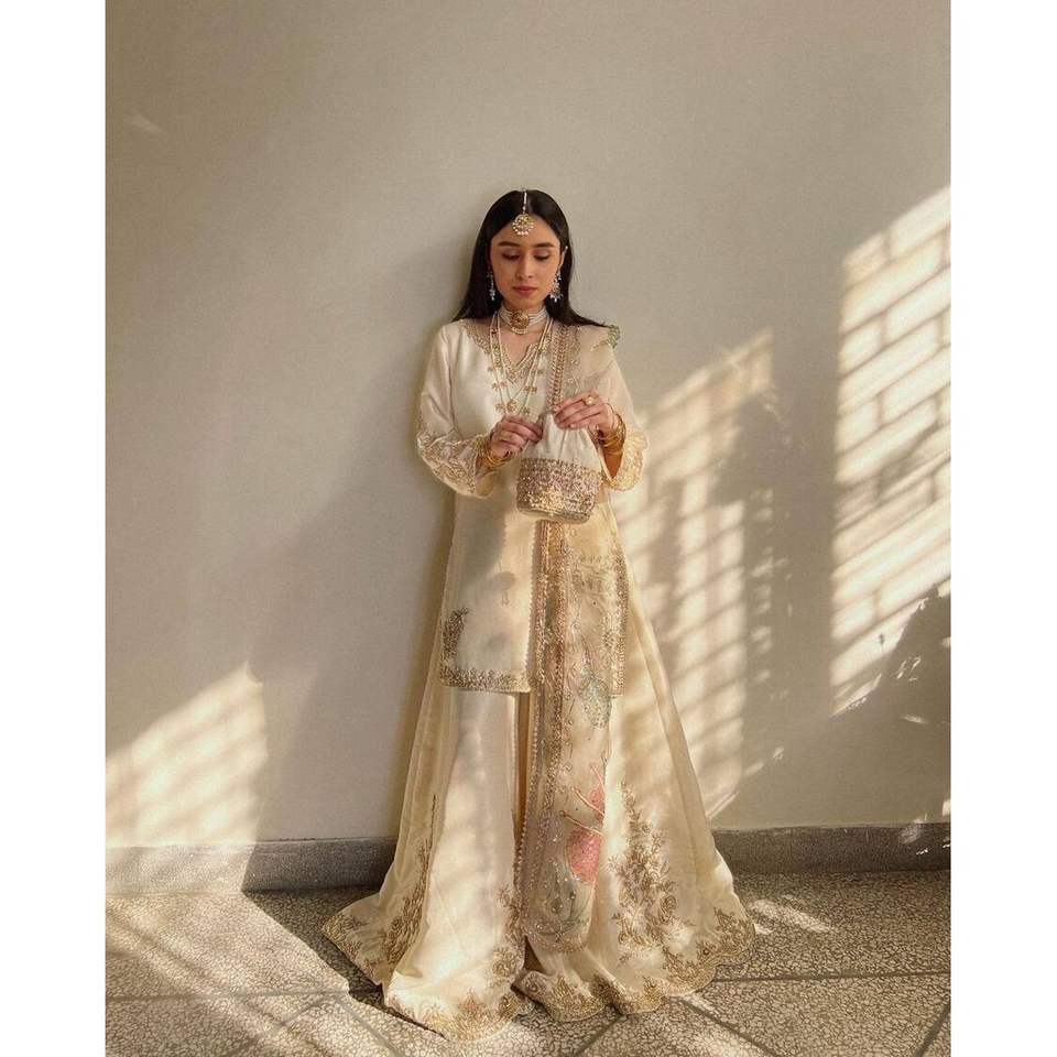 RICH LOOK CHINON SEQUENCE EMBROIDERY WORK TOP PALAZZO with DUPATTA WHITE