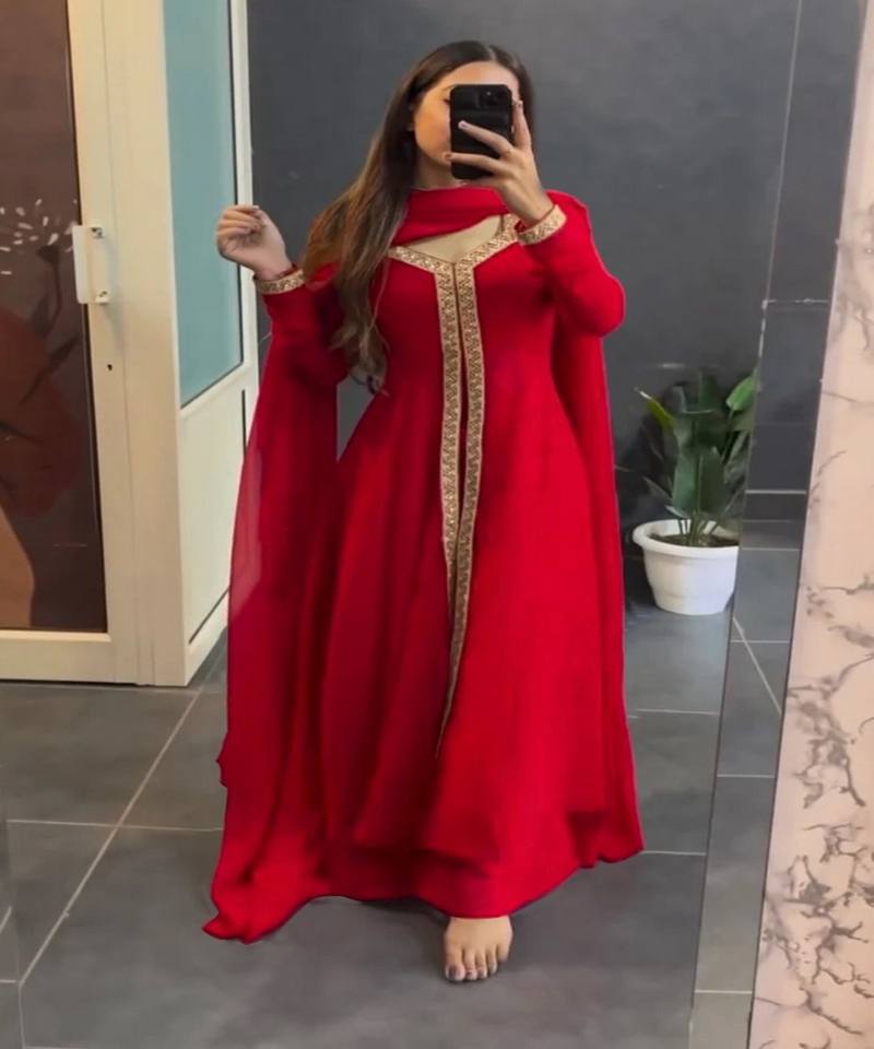 RICH LOOK COTTON GEORGETTE SEQUENCE WORK TOP-BOTTOM-DUPATTA FESTIVE WEAR LUXURY ETHNIC GARMENT MULTI COLOR LATEST DESIGNER FREE