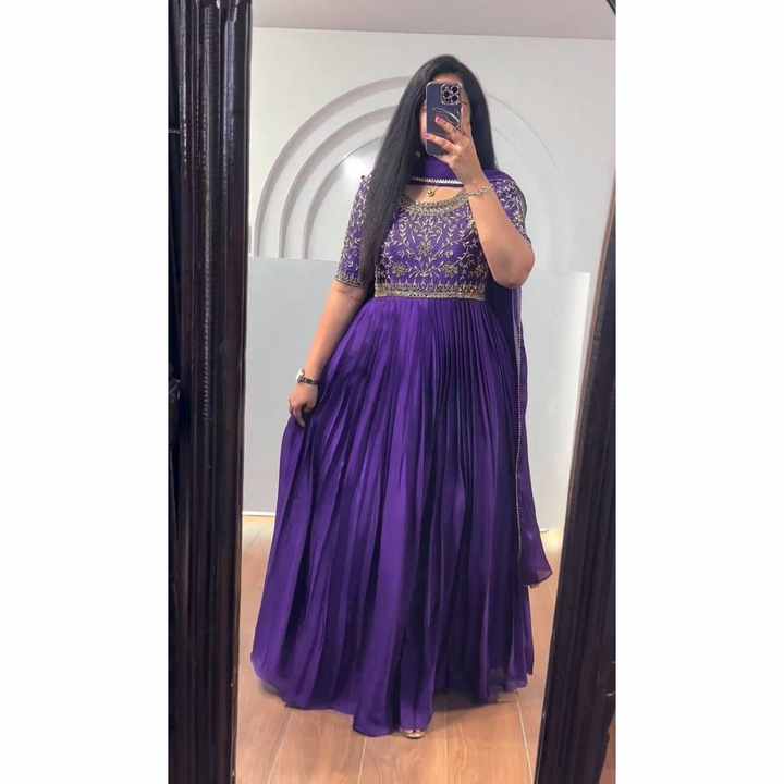 RICH LOOK GEORGETTE EMBROIDERY THREAD SEQUENCE WORK GOWN with DUPATTA in PURPLE