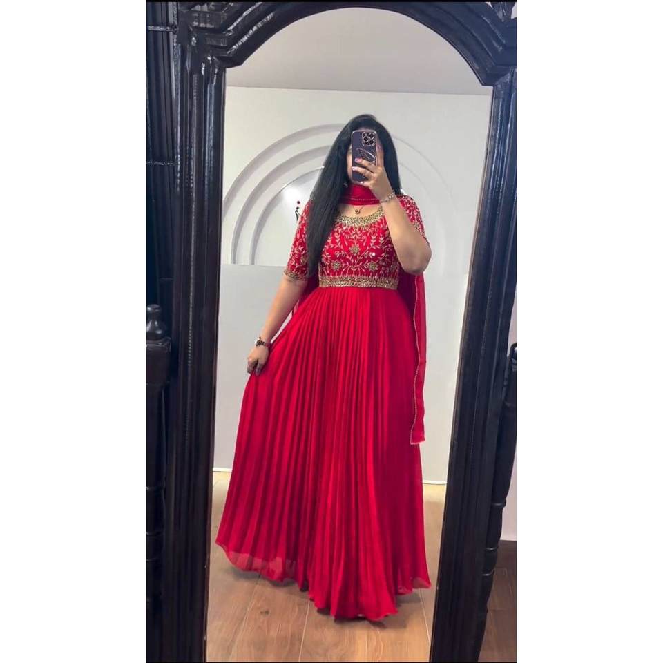 RICH LOOK GEORGETTE EMBROIDERY THREAD and SEQUENCE WORK GOWN WITH DUPATTA RED