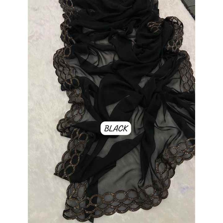 LOOK RICH GEORGETTE VELOURS COUPE DENTELLE SIROSKI TRAVAIL SAREE AVEC CHEMISIER NON COUDU NOIR