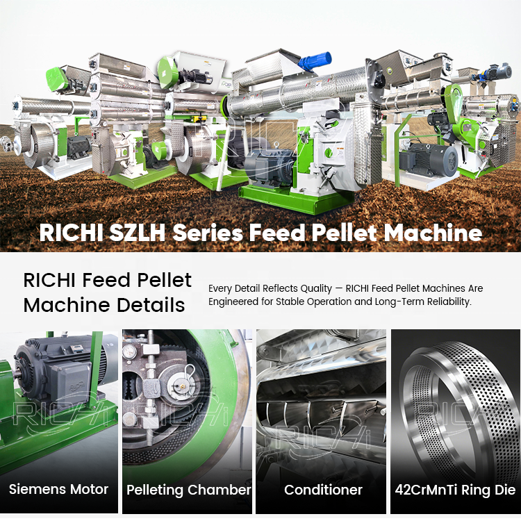 RICHI Moulin à granulés d'aliments pour bétail de 2 tonnes par heure - Certification CE Machine de fabrication d'aliments pour animaux, bétail et porcs