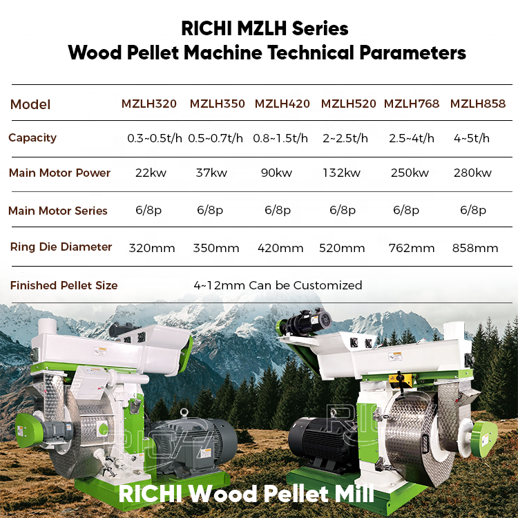 RICHI High efficiency Palm Wood one ton hour pellet wood machine