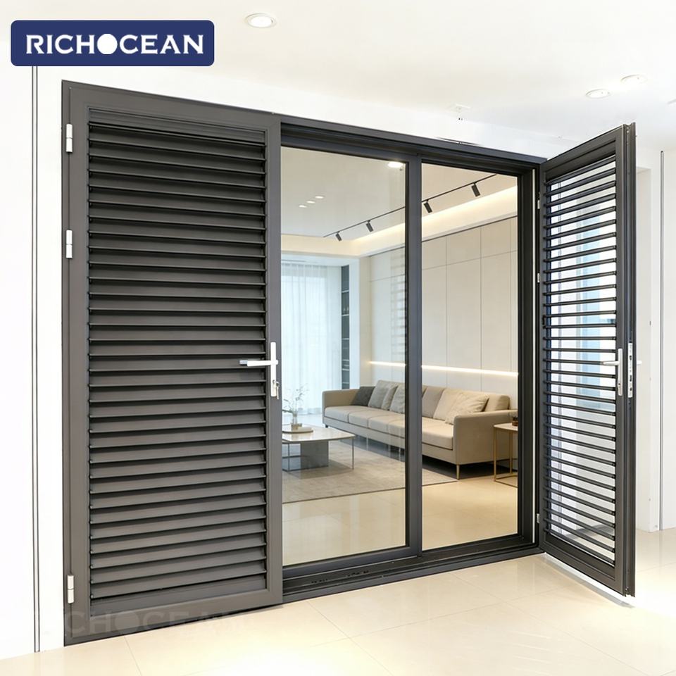 Portes à persiennes en aluminium réglables manuellement sur mesure RICHOCEAN, économiseuses d'énergie, pour maisons