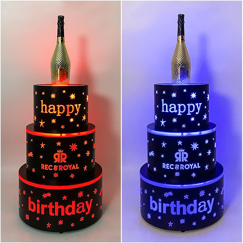 2 3 4 Tier VIP Bottle Presenter Happy Birthday LED Cake