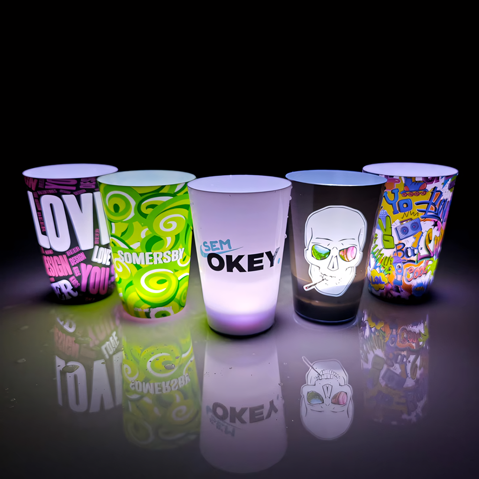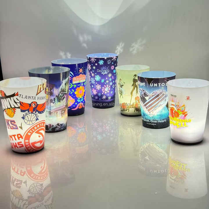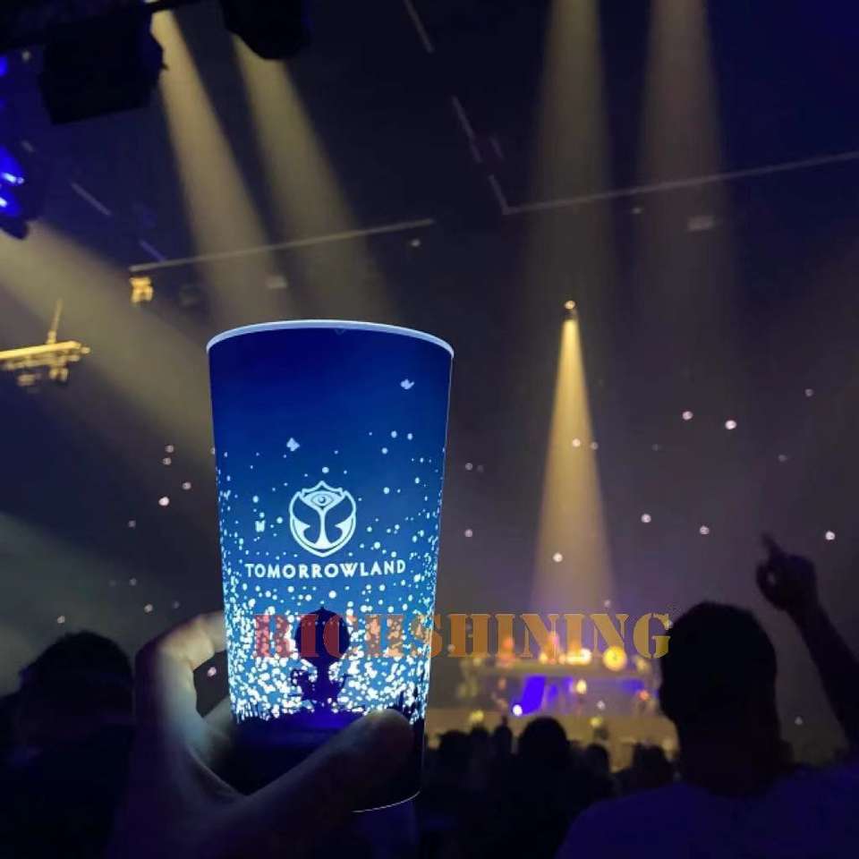 RICHSHINING Tasse de fête en plastique LED 12OZ 14OZ 16OZ personnalisée Effet lumineux activé par l'eau Détection de lumière Clignotant Caractéristiques Fêtes