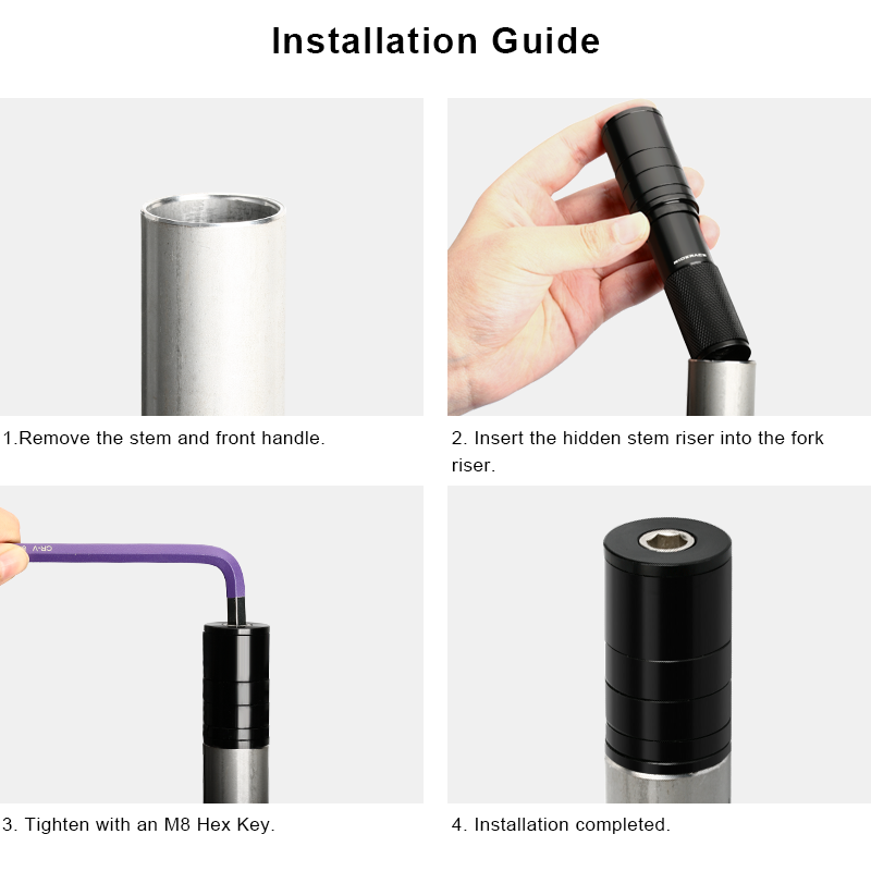 RIDERACE Extension de potence de guidon en alliage d'aluminium avec rondelle de jeu de direction pour VTT et vélo de route, adaptateur de rehausseur de guidon dissimulé