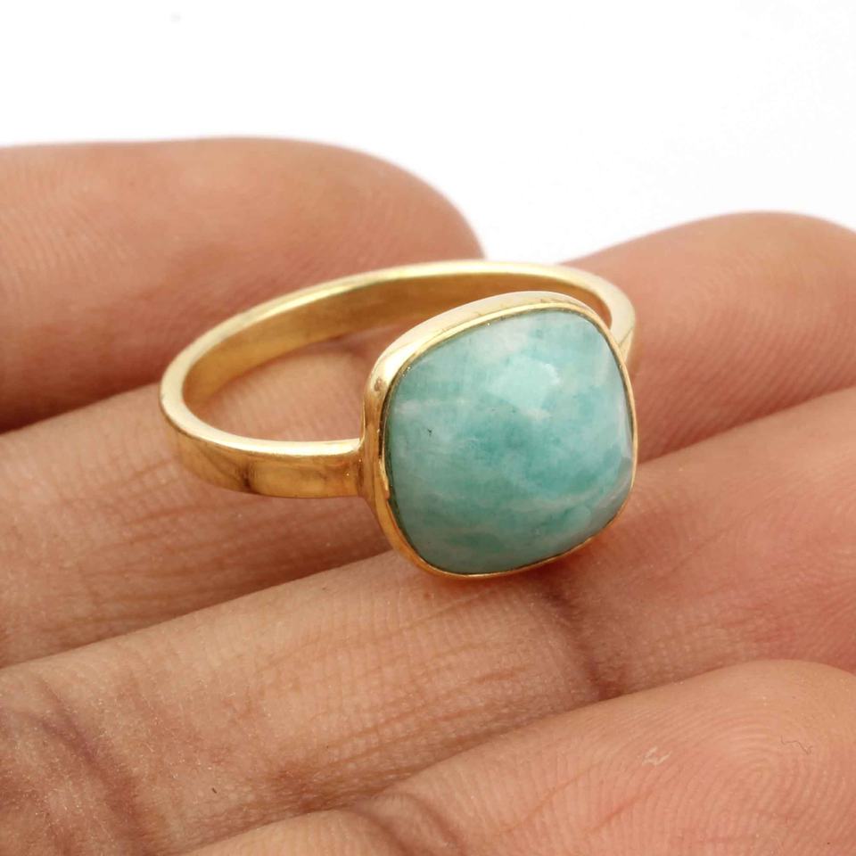 RJR0062 Amazonite Gemstone Éternité Vermeil Fine Bague 10mm Coussin Bohème 925 Bijoux En Argent Sterling Cadeau pour Femme