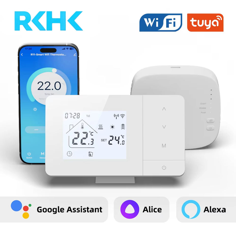 Thermostat d'ambiance sans fil RF intelligent RKHK pour système de chaudière à gaz, compatible avec l'application Smart Life et les commandes vocales Google Alexa Smart Nest Learning