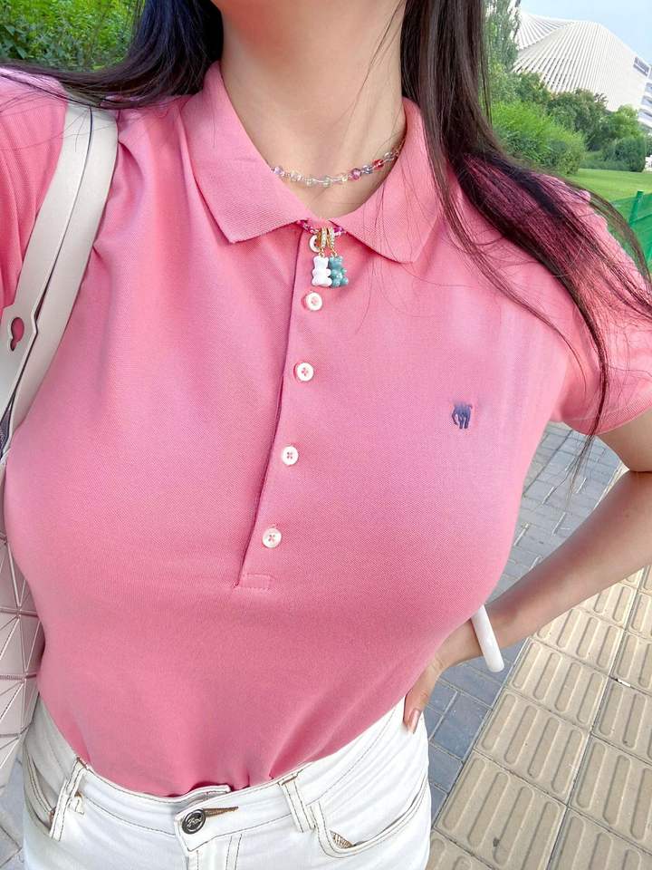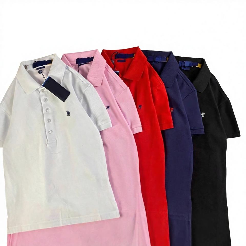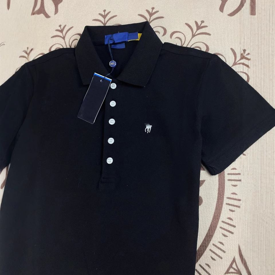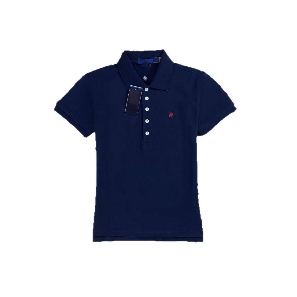 RL Ralph for Mark T-shirt en coton pour femme, brodé, style anglais, col à cinq boutons, coupe ajustée, vintage, uni