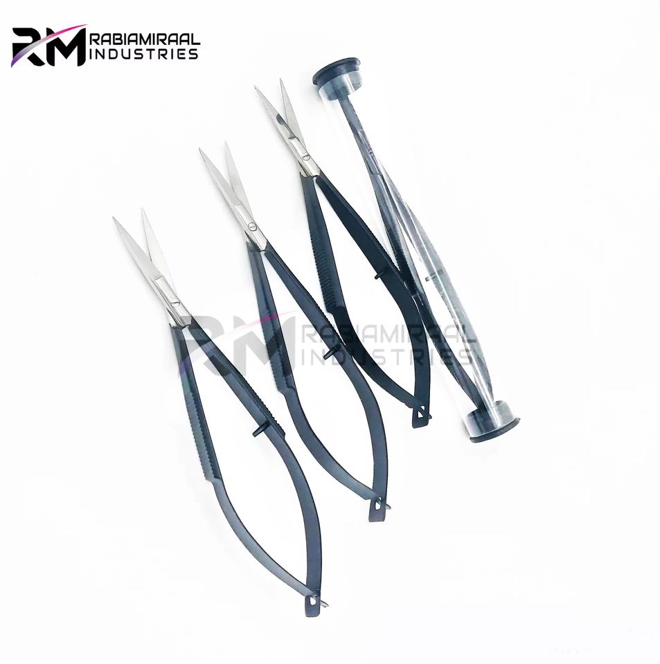 RMI-AS-SPS-17001 Ciseaux de manucure russes à double action en acier inoxydable noir mat avec poignée antidérapante lame de beauté droite