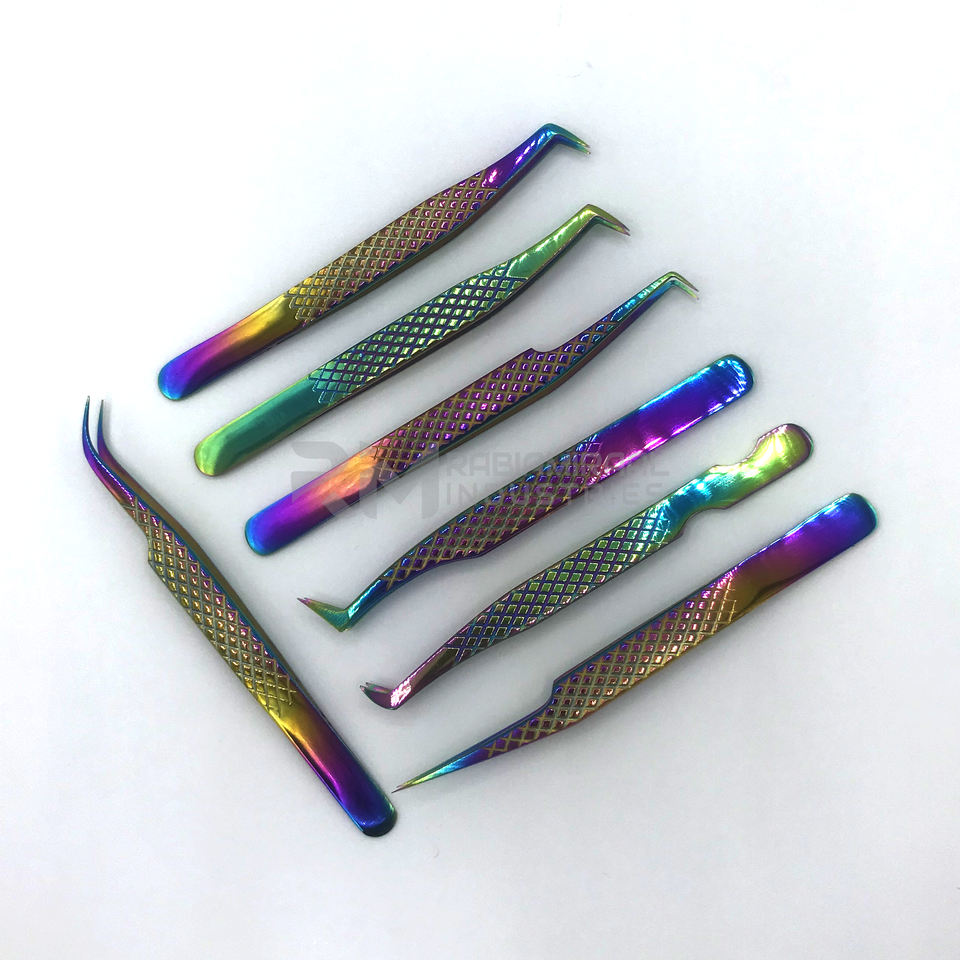 RMI Multi Plasma Titane Couleur En Acier Inoxydable Greffage De Cils Pince À Épiler pour Planter Faux Cils Beauté Outils 7 Pcs Ensemble