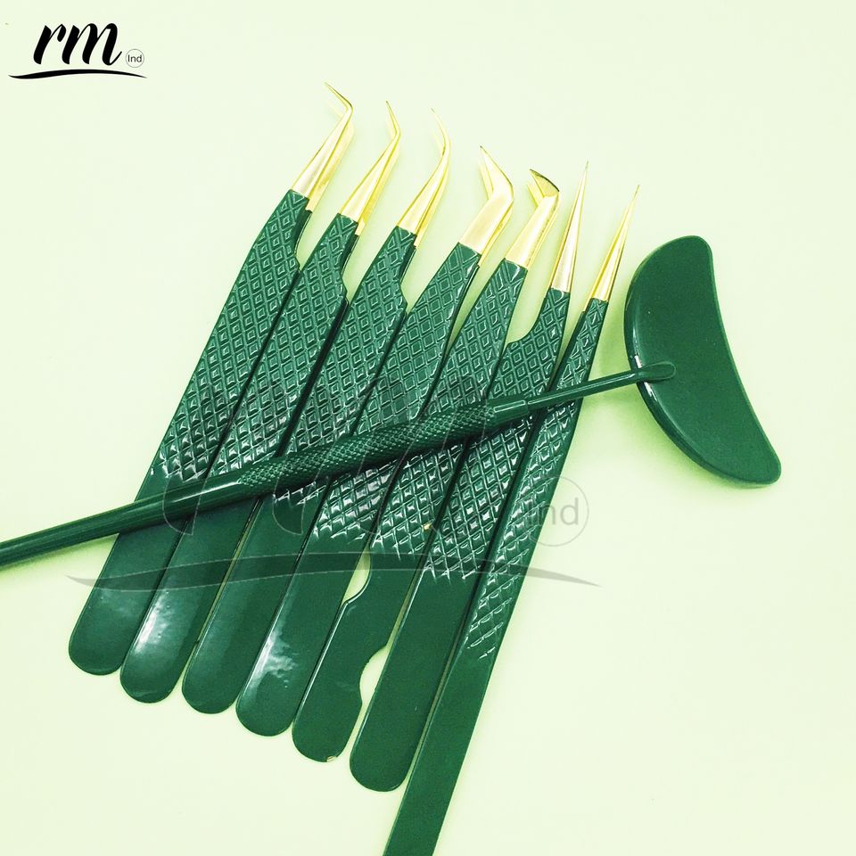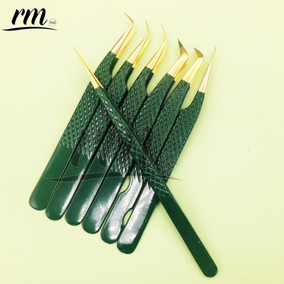 RMI Perroquet Vert Diamant Grip avec Pointe Dorée En Acier Inoxydable De Luxe Extension De Cils Pince À Épiler Marque Privée Durable