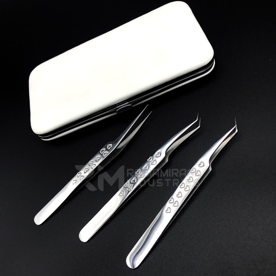 RMI pince à cils professionnelle en argent acier japonais durable avec poignée en forme de coeur et étui magnétique de couleur blanche