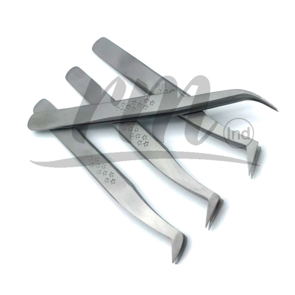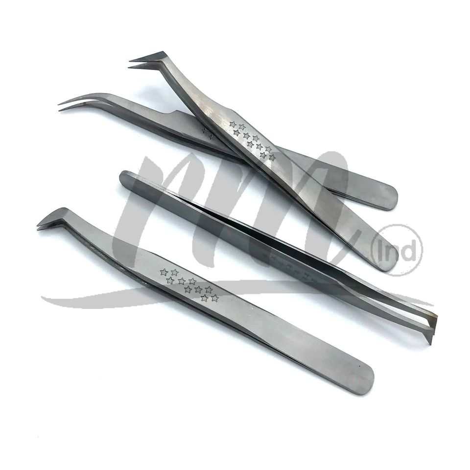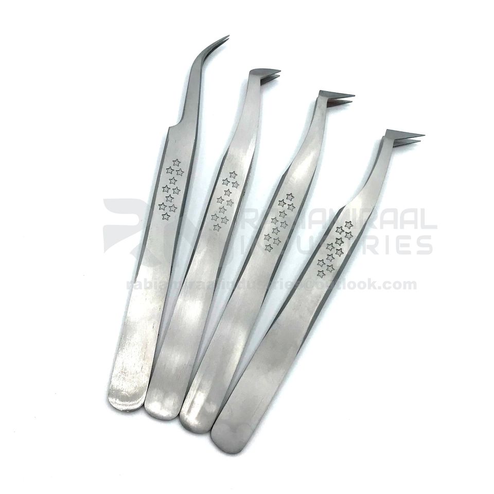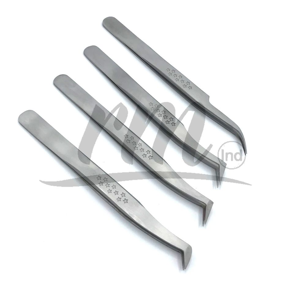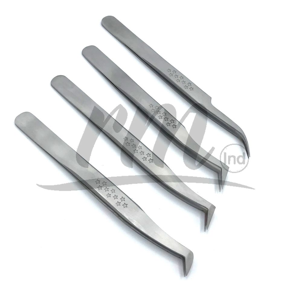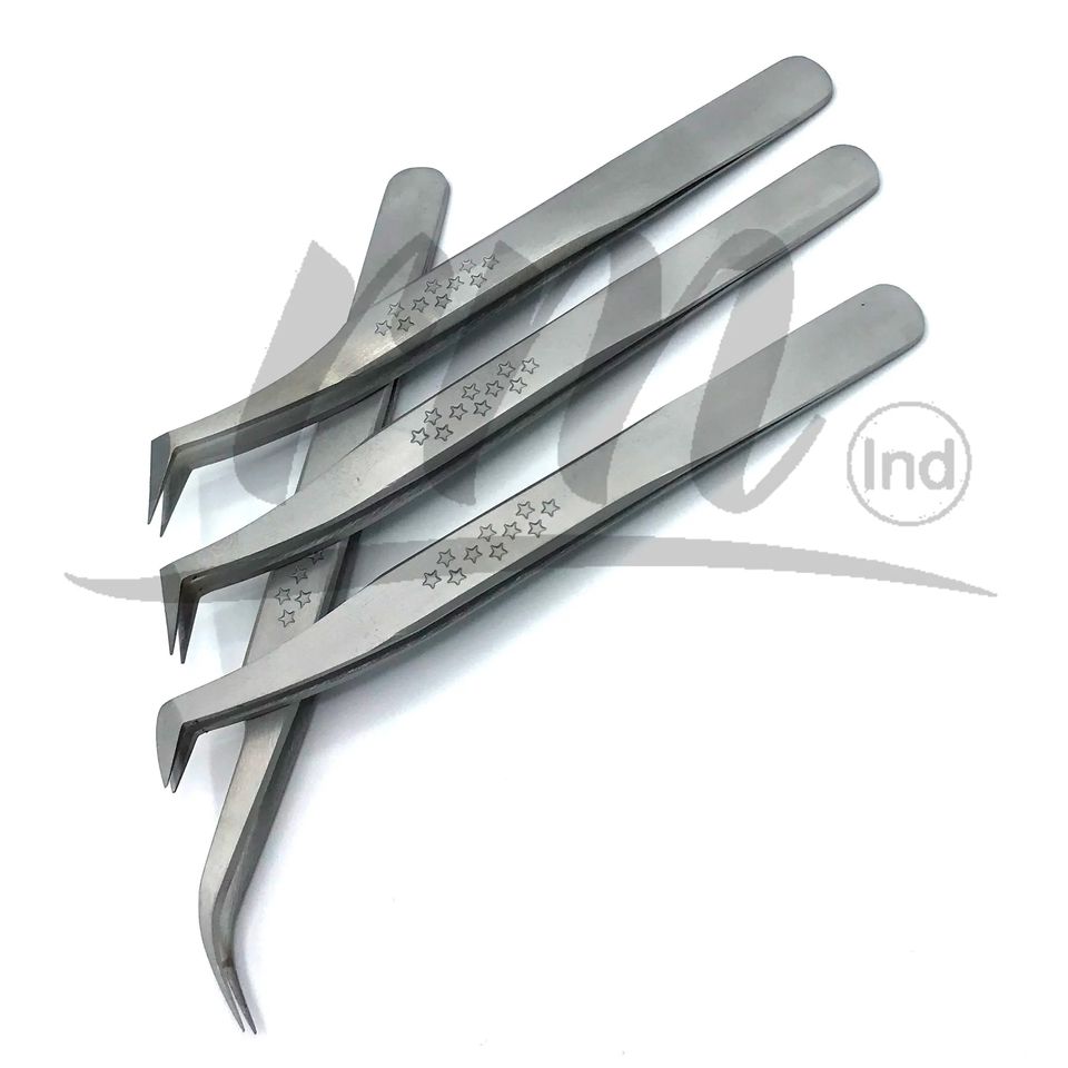 Pince à épiler RMI en acier inoxydable, couleur argent, forme étoile, antidérapante, légère, pour extensions de cils et faux cils, finition mate