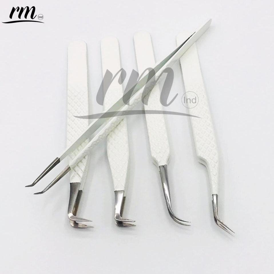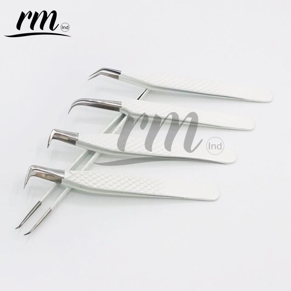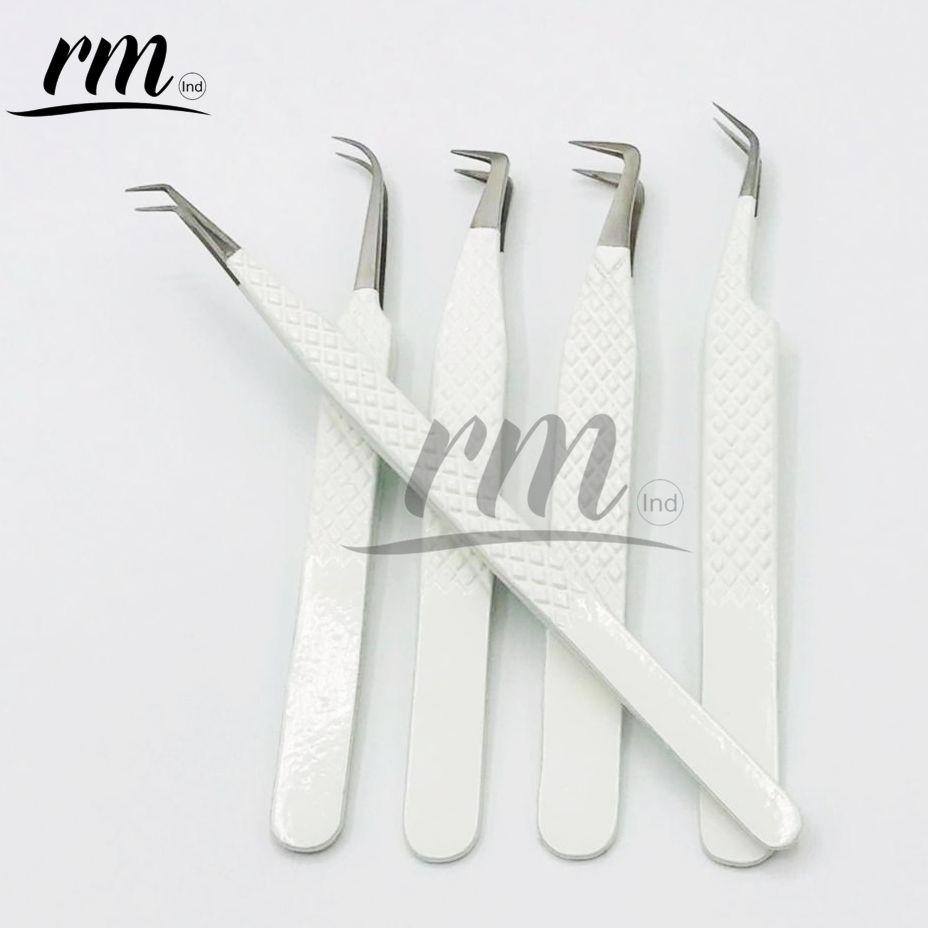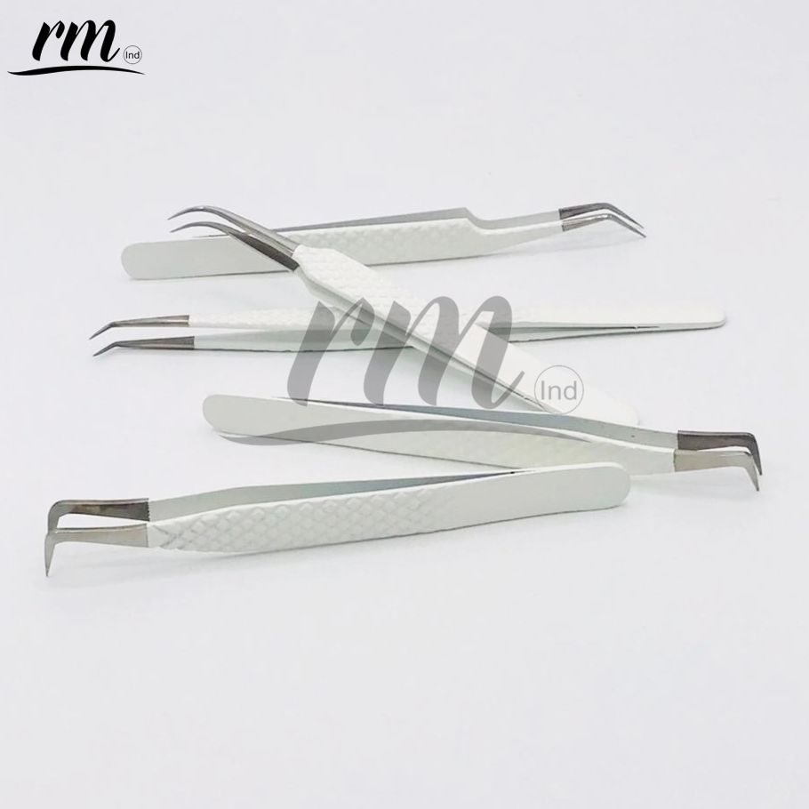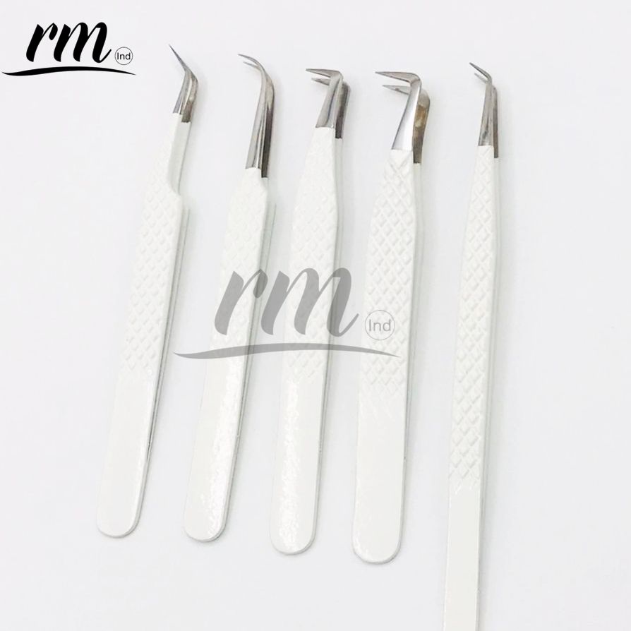 Pince à épiler pour extensions de cils RMI, couleur poudre blanche et pointe argentée, personnalisable avec 5 pointes différentes
