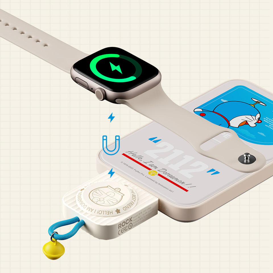 Chargeur sans fil portable ROCK Doraemon sous licence officielle W26 Mini pour Apple Watch, chargeur magnétique pour montre intelligente