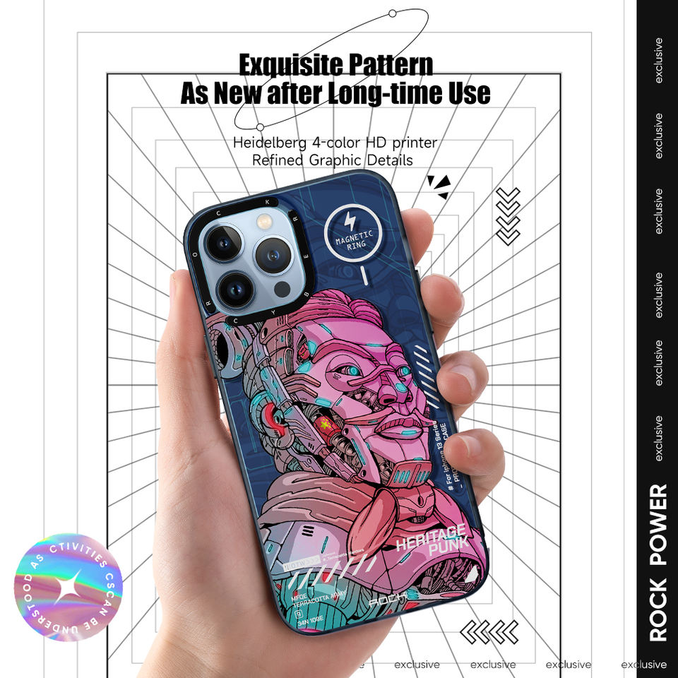 ROCK Fashion Impression InShare étui de protection série Punk Support de Style terre cuite charge sans fil pour iPhone série 13
