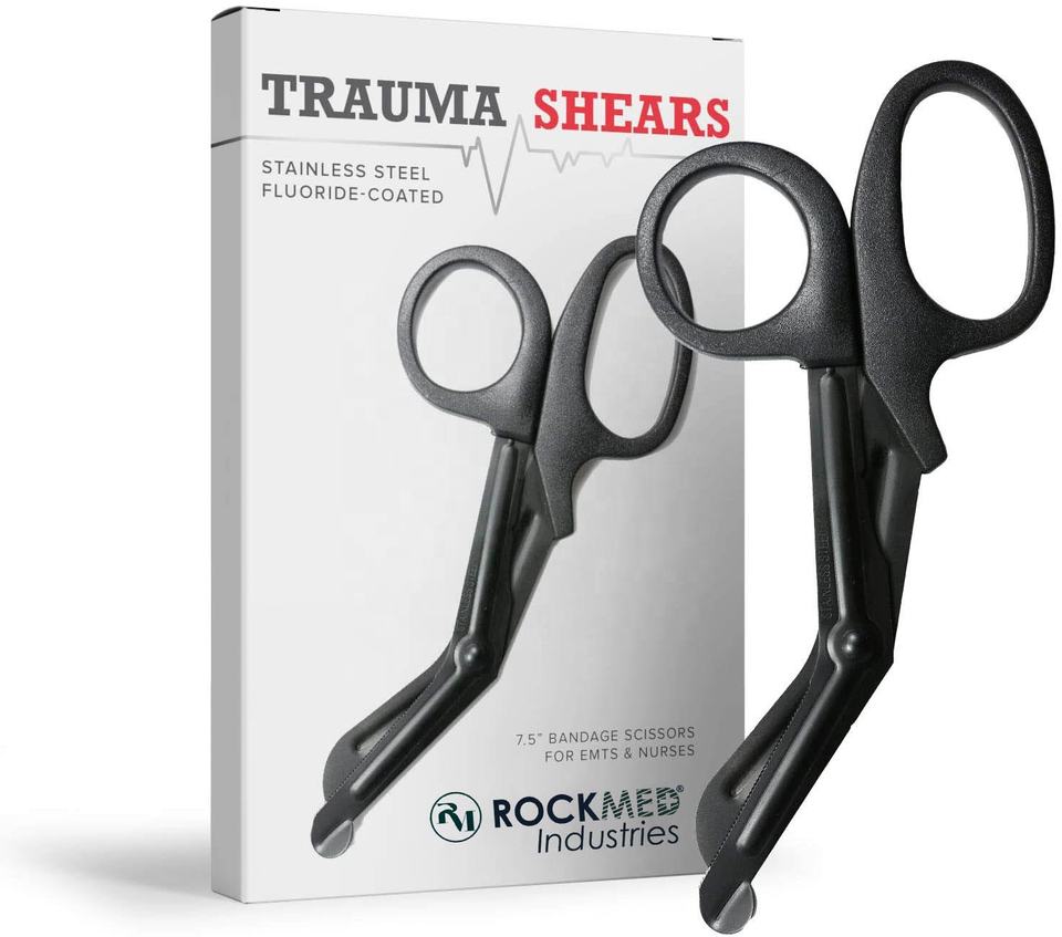 Ciseaux médicaux de sécurité ROCKMED ARTE Black Trauma Shears à pointe arrondie, réutilisables, en acier, résine et métal, certifiés CE