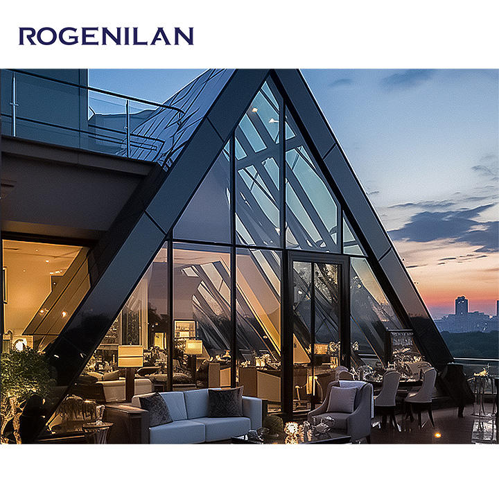 Fenêtre à battant triangulaire en aluminium à double vitrage trempé sur mesure ROGENILAN