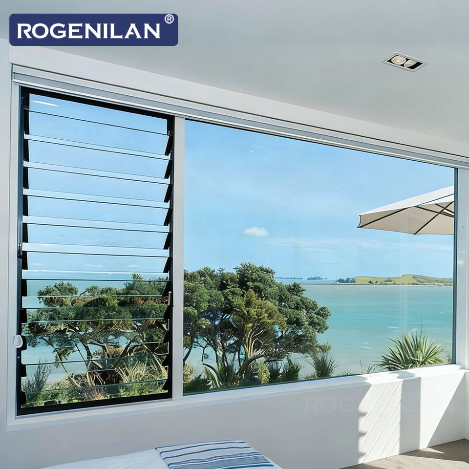 ROGENILAN Fenêtre à persiennes en aluminium et verre, étanche, personnalisable, avec double vitrage Low-E réglable pour fenêtres