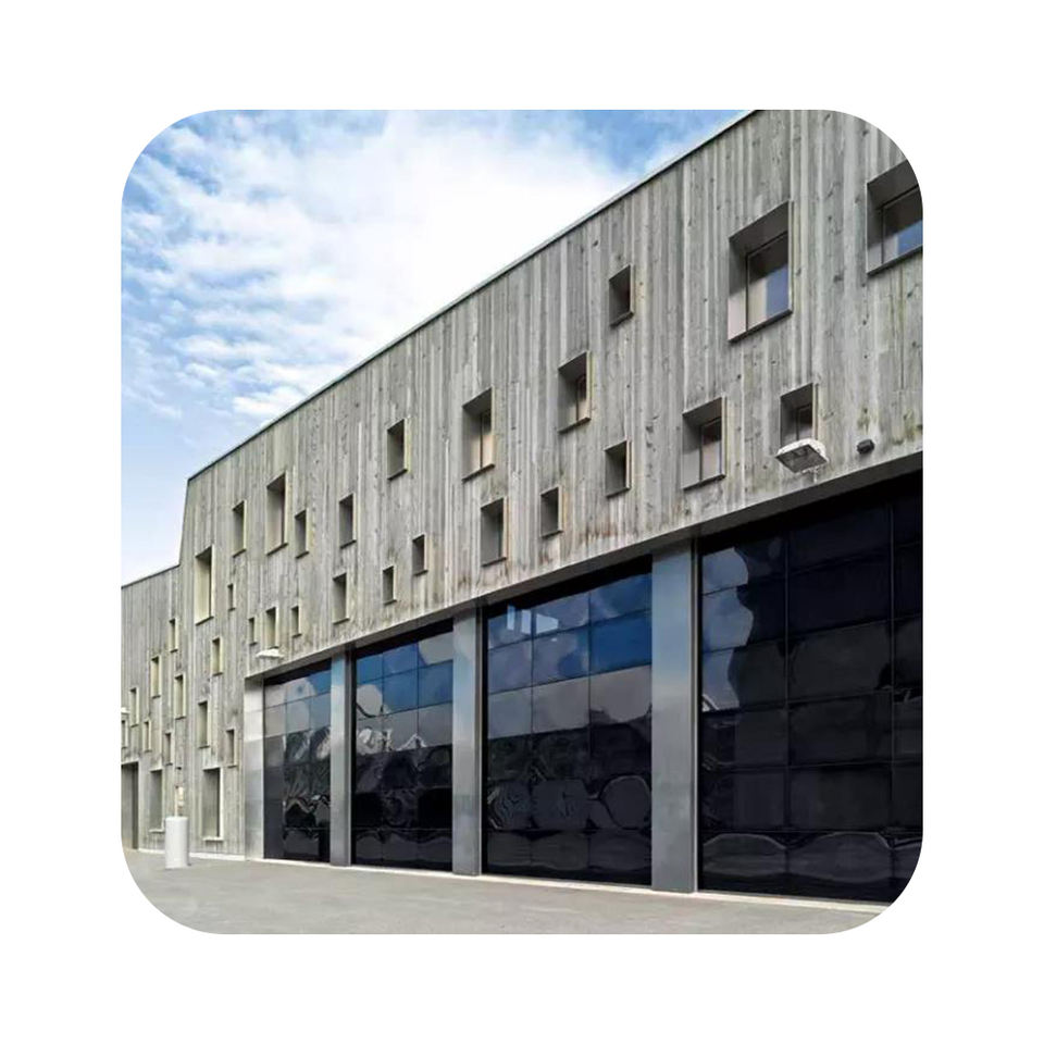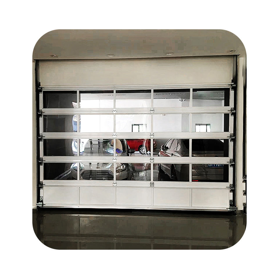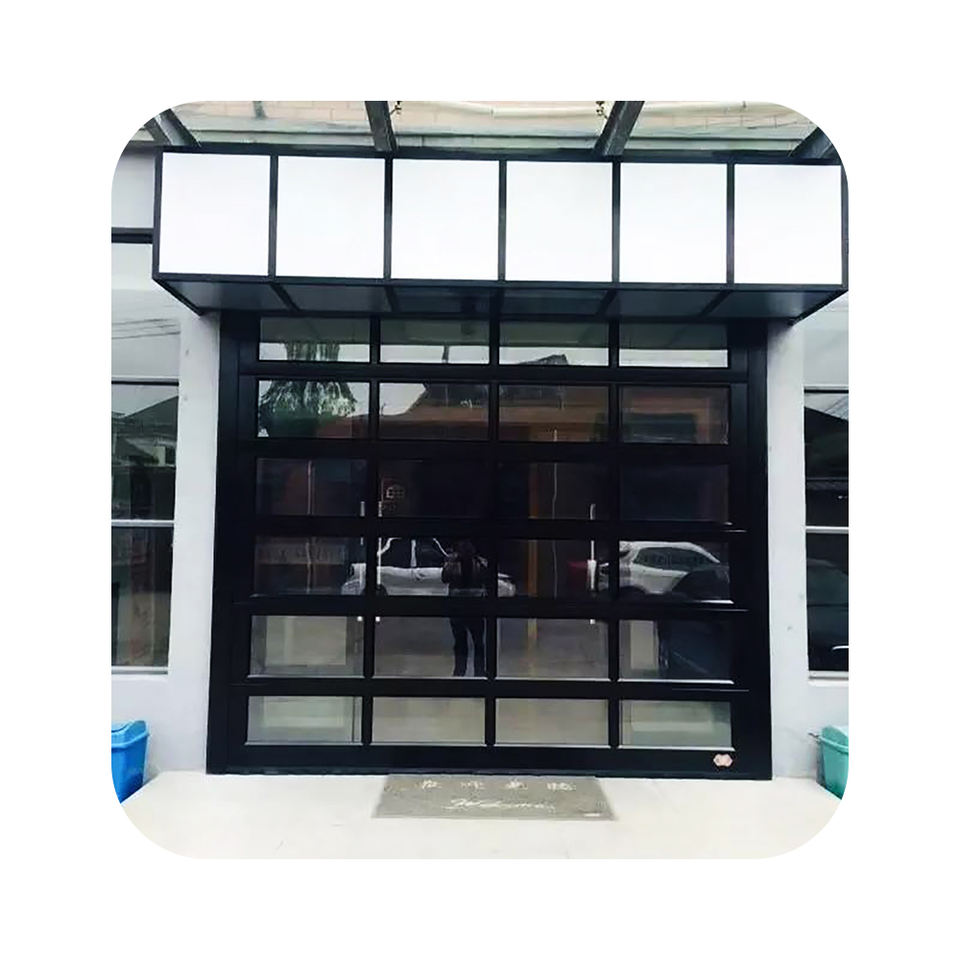 Portes de garage modernes à double isolation, sans cadre, en aluminium sectionnel automatique, en verre trempé ROGENILAN, 16x8, usage commercial