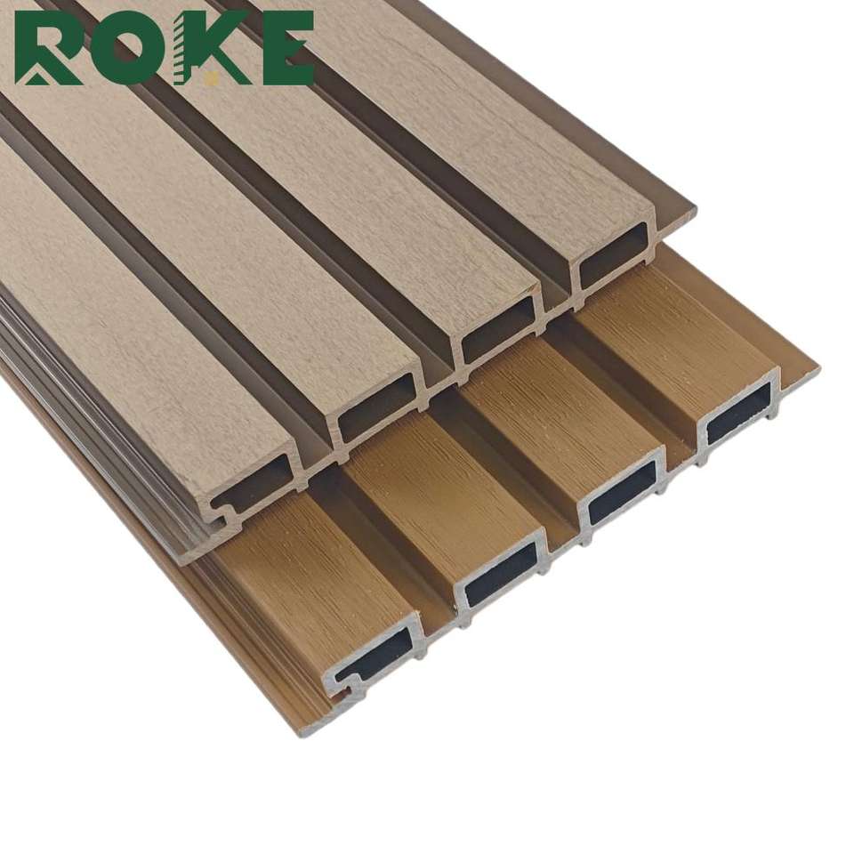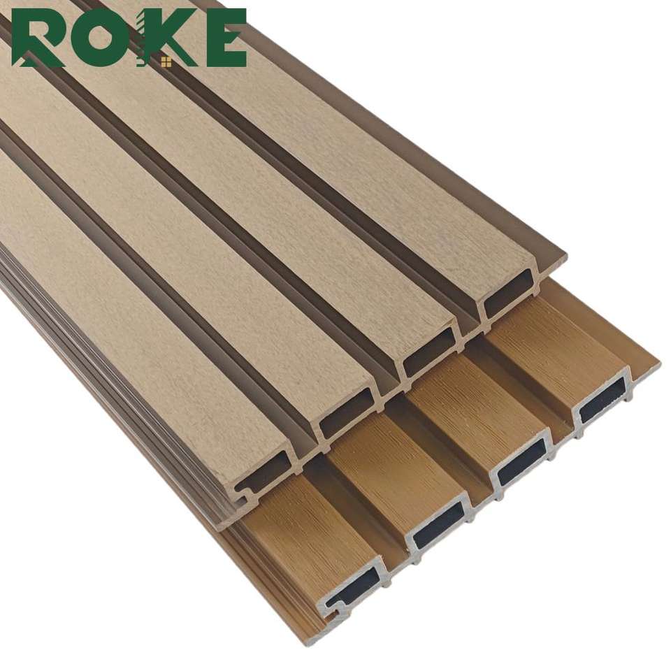 Revêtement mural extérieur imperméable ROKE, panneau décoratif rainuré, panneau mural extérieur décoratif WPC