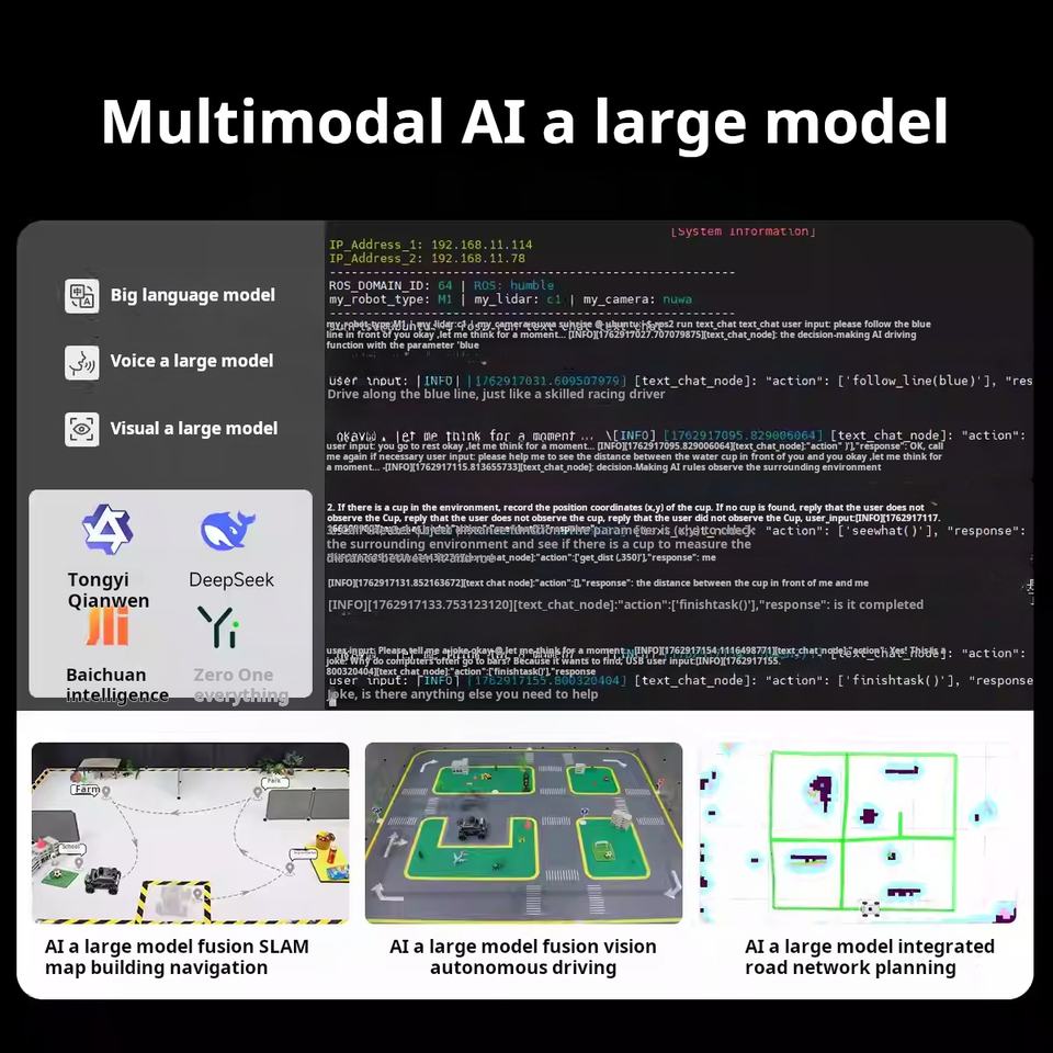 Plateforme de développement de modèles d'IA de grande taille pour voiture robot autonome ROS2, mode double NVIDIA Jetson Nano/Raspberry Pi 4B
