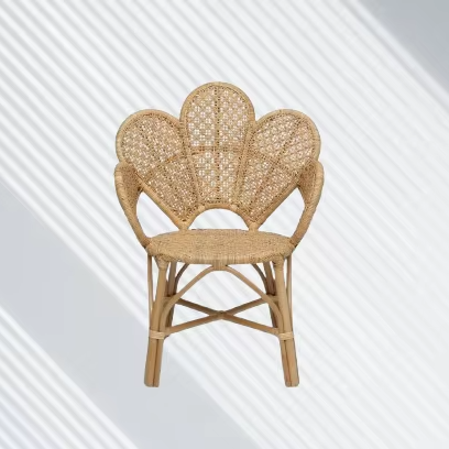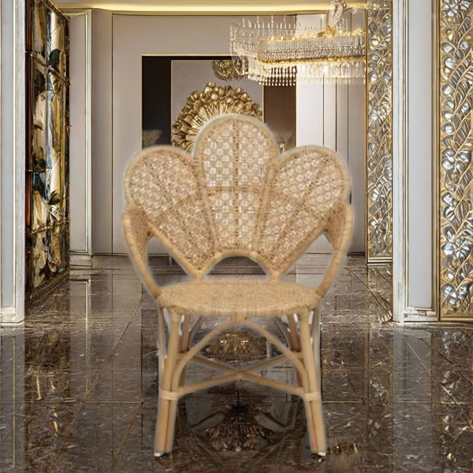 Fauteuil modulaire moderne en rotin touffeté ROSE avec pieds en bois - Chaise de loisirs durable pour chambre, salle à manger, salon et centre commercial