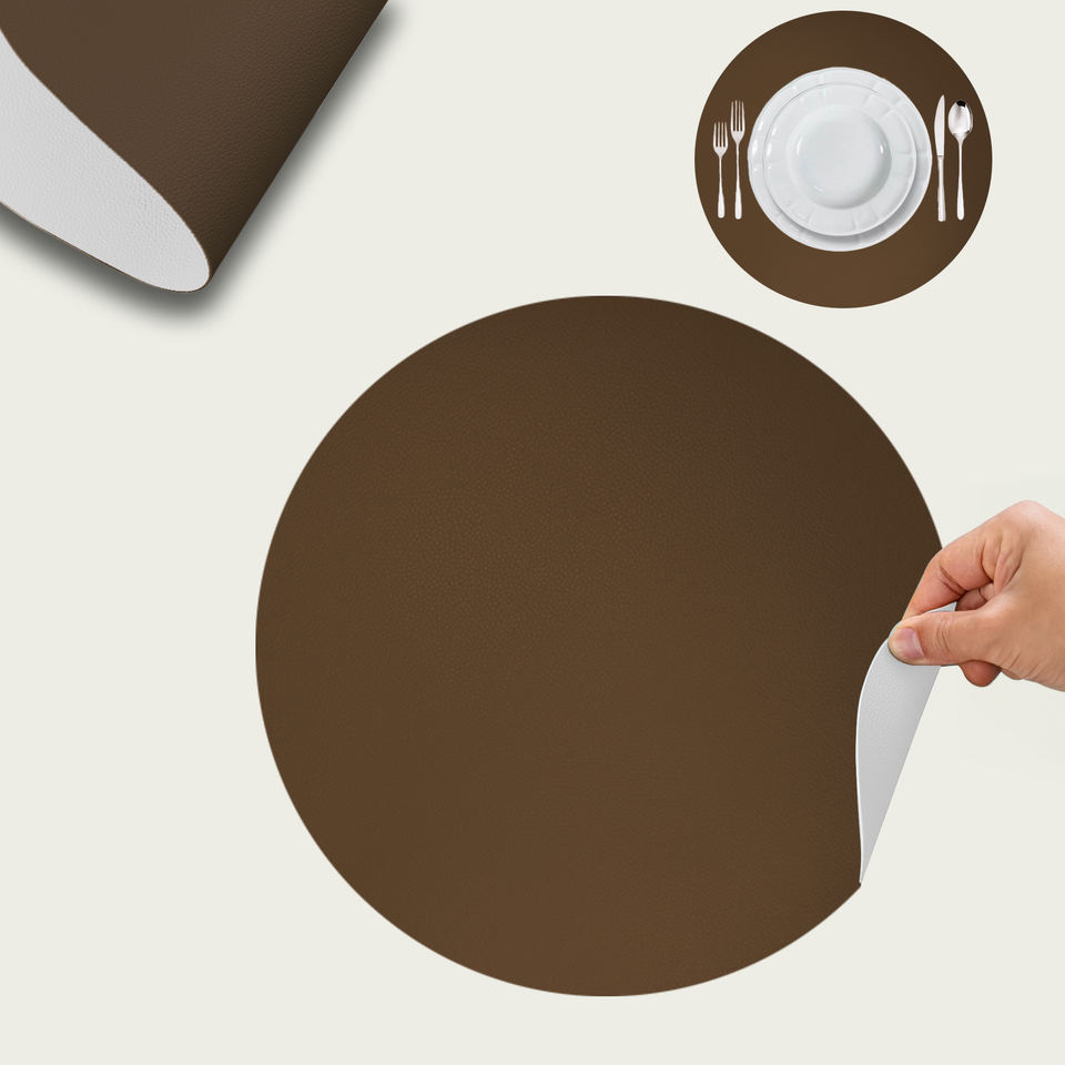 Sous-plat rond en similicuir, diamètre [indique le diamètre]. 38CM, DOUBLE FACE, MARRON ET IVOIRE