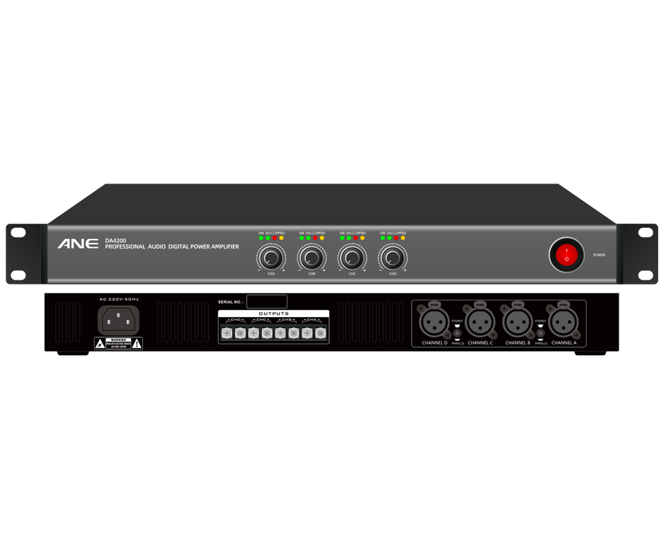 Amplificateur de puissance 4 canaux ROVAPA DA4200 1U pour montage en rack, 4x200W avec facteur de damping élevé de 900 pour système audio multi-zones