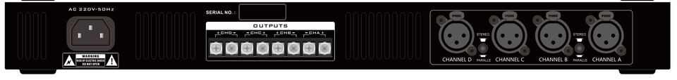 Output power @ stereo 8Ω (THD ≤ 1%):4*200W