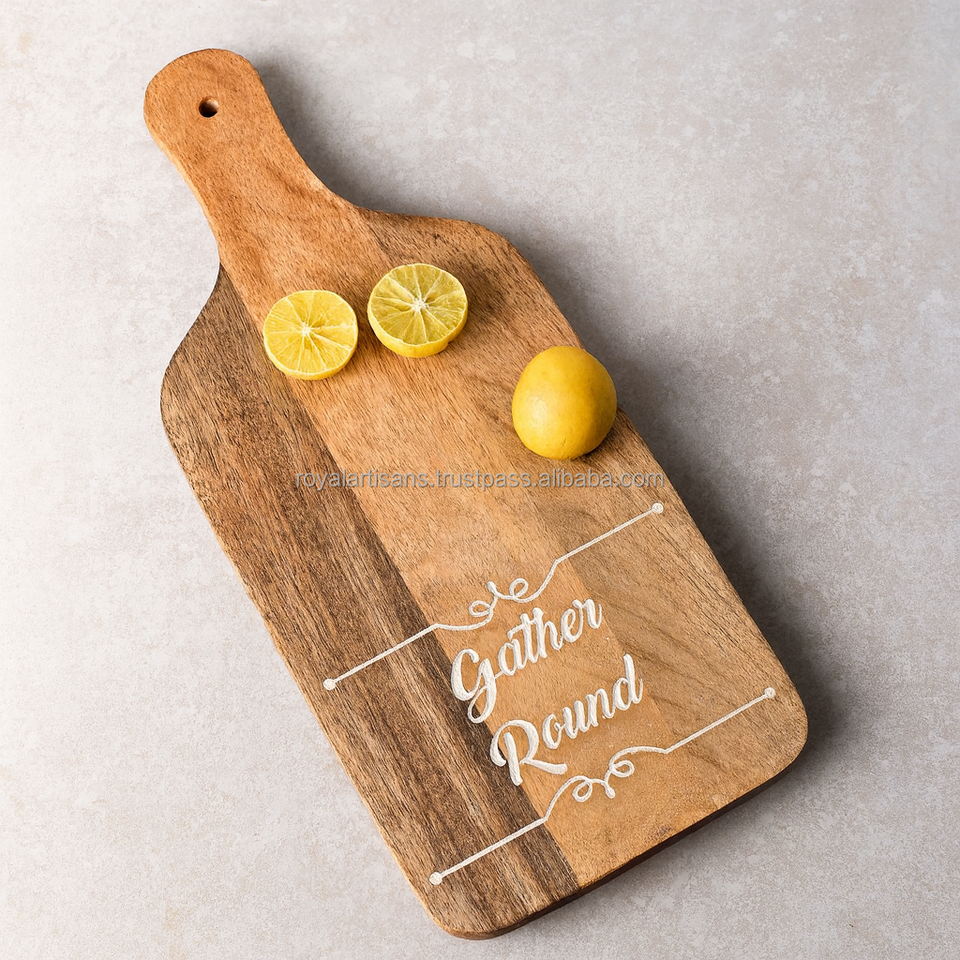 Planche à découper en bois de manguier double face épaisse de 1,5 cm, écologique et personnalisée ROYAL ARTISANS, pour boucher, viande et charcuterie