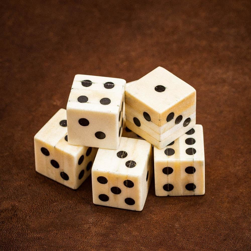Dés incrustés d'os naturel