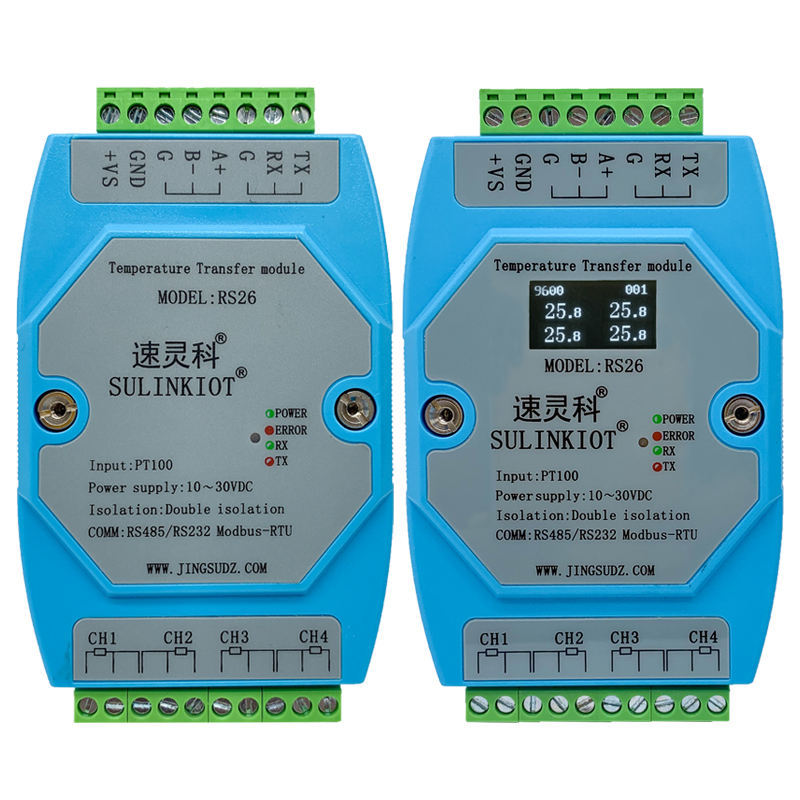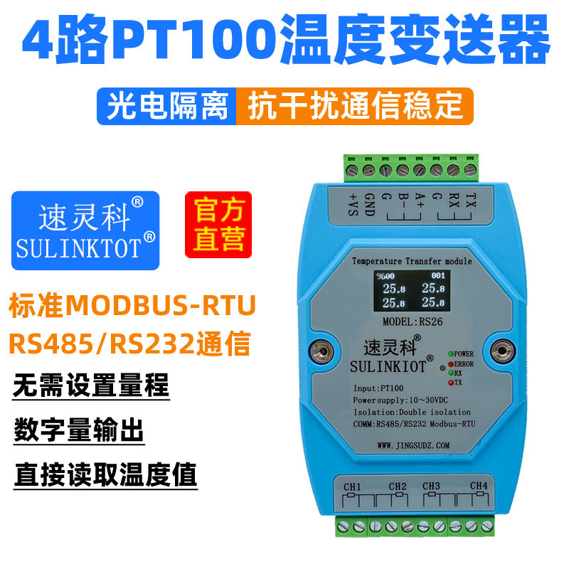Transmetteur de température PT100 à 4 canaux RS26 avec isolation optique RS485/RS232