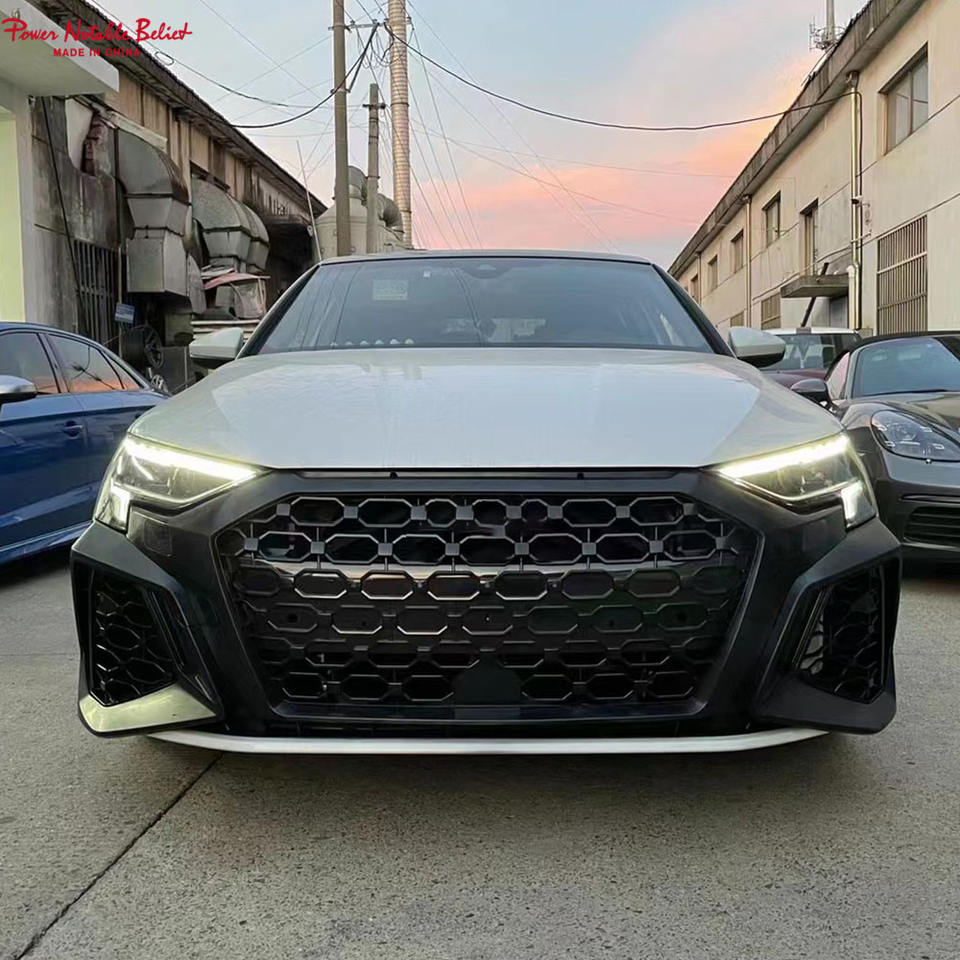 Kit carrosserie RS3 Bodikits pour Audi A3 S3 Pare-chocs avant avec calandre en maille de radiateur et lèvre avant en matériau PP 2020 2021 2022