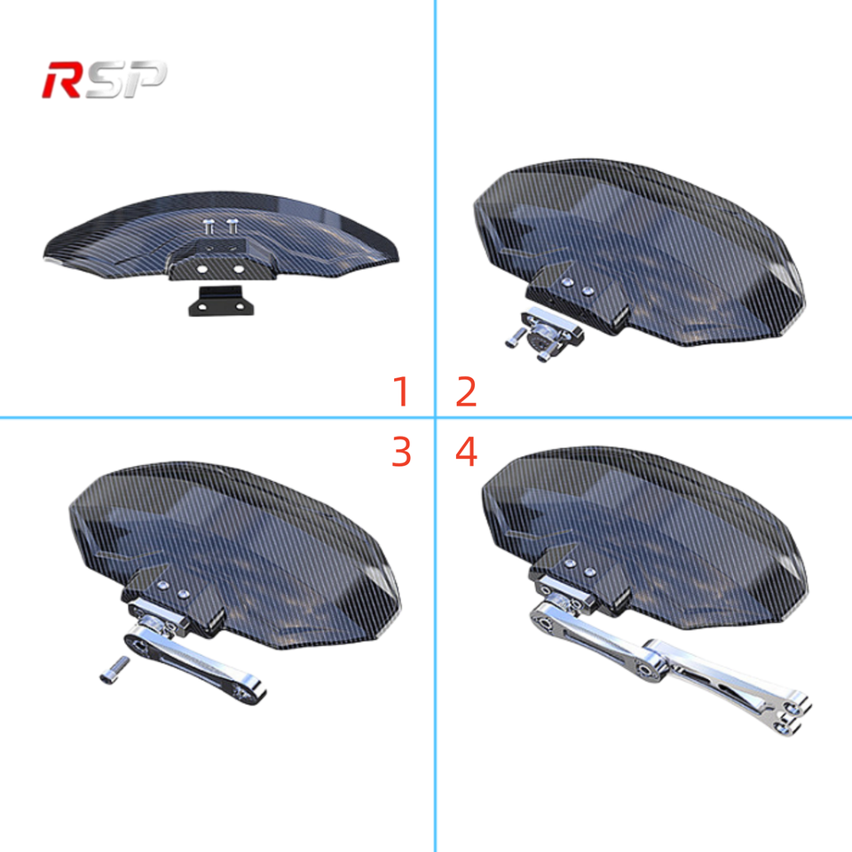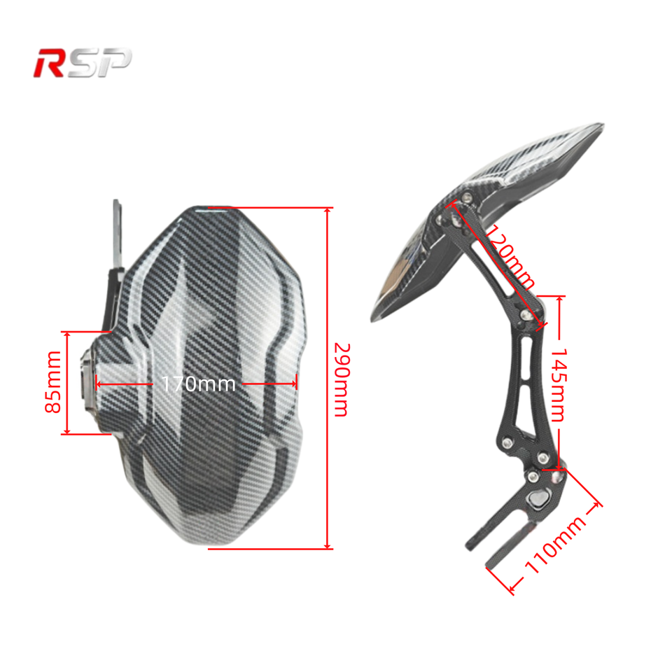 Garde-boue arrière universel pour moto et vélo électrique RSP, protection contre les éclaboussures, en alliage d'aluminium CNC et support en plastique, aspect fibre de carbone