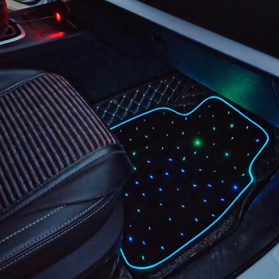 RSPOF Ensemble complet de tapis de voiture en fibre optique Starlight en tissu personnalisé 4 pièces Tapis de sol universels en fibre optique Star Light pour voiture
