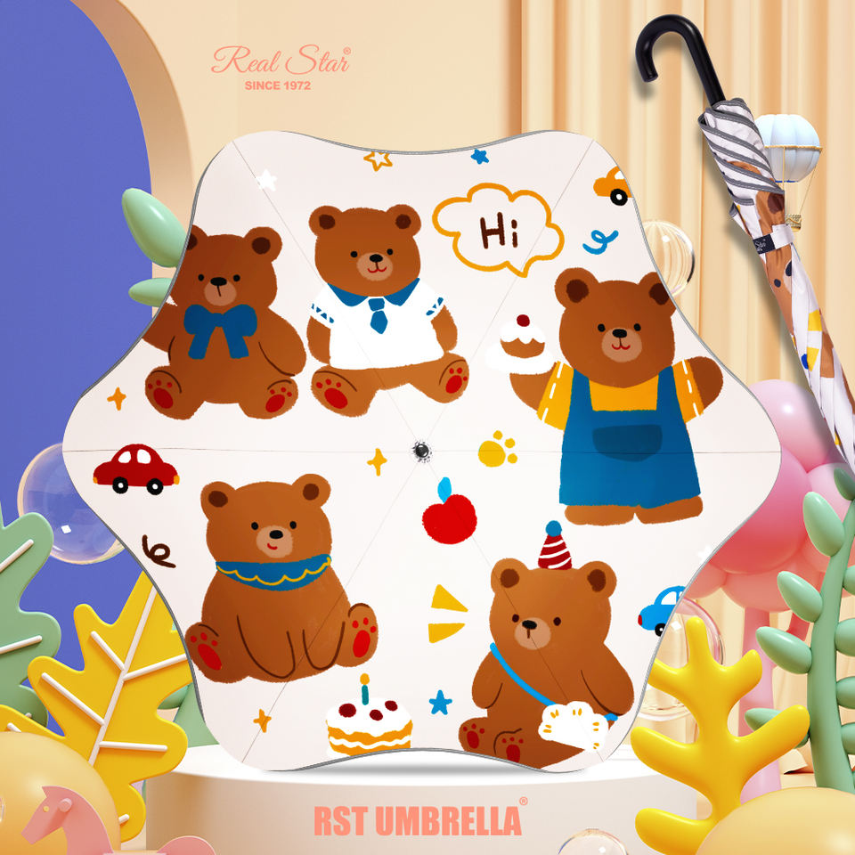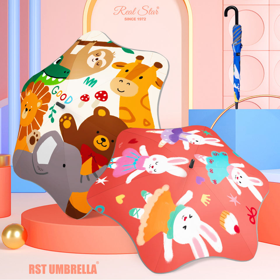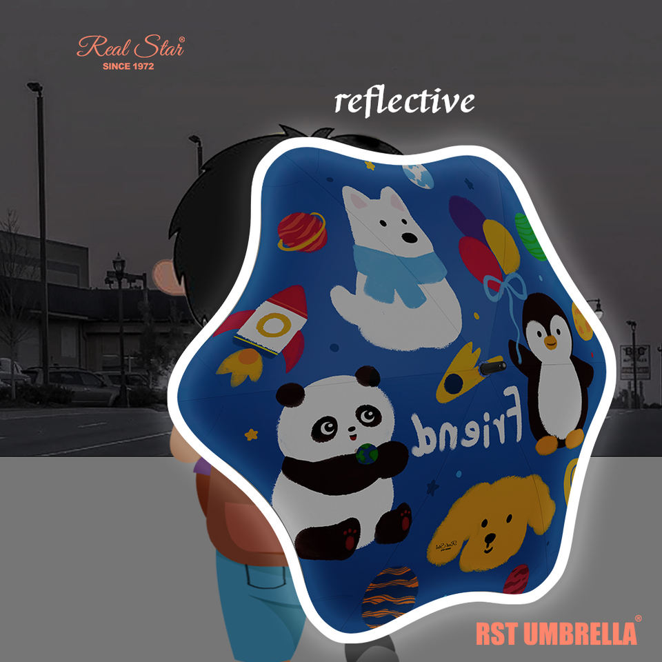 Parapluie de coin rond émoussé RST impression complète soleil et pluie sans danger manuel motifs de dessin animé réfléchissants parapluie enfant