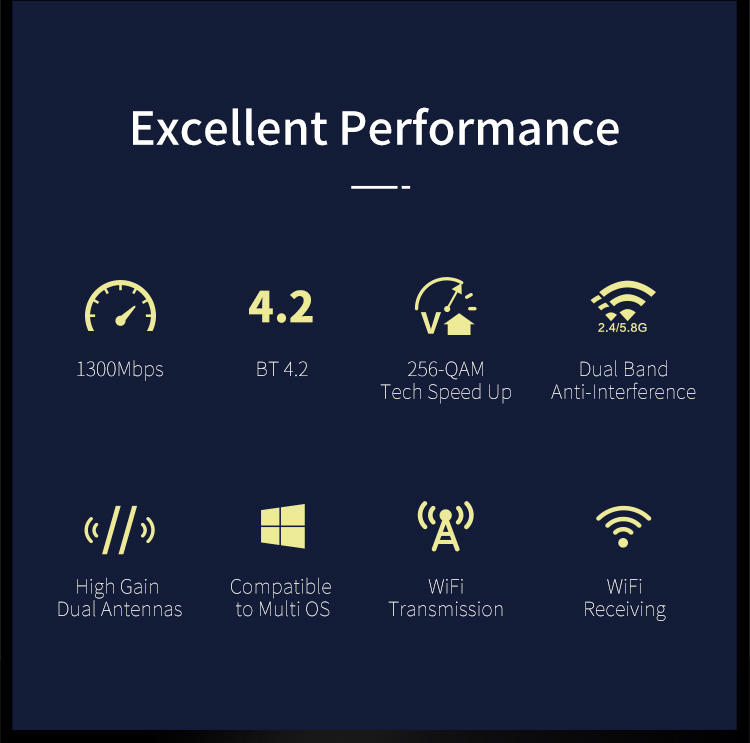 Nom du produit:1300mbps 2 dans 1 adaptateur d'usb du wifi bt4.2