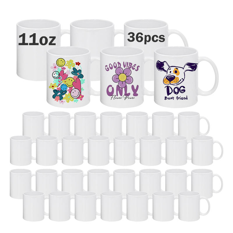 Gobelet en céramique blanc de style classique de 11 oz pour sublimation, avec impression personnalisée, pour la rentrée scolaire, emballage individuel en mousse, 36 pièces/carton