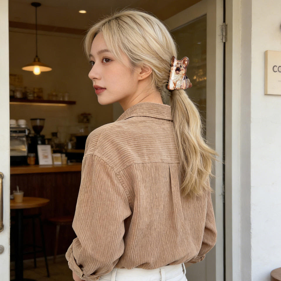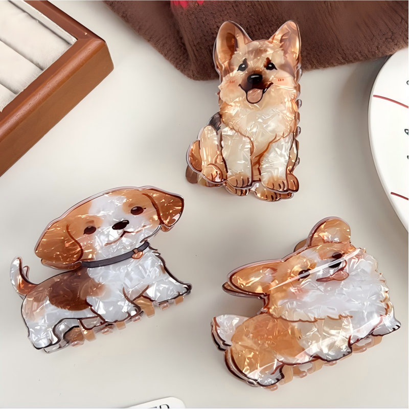 RTS-3 Nouvelle Grande Pince à Cheveux Mignonne pour Chien (Samoyède, Corgi, Border Collie) – Pinces à Cheveux Personnalisées pour Queue de Cheval, Accessoires Capillaires Type Requin