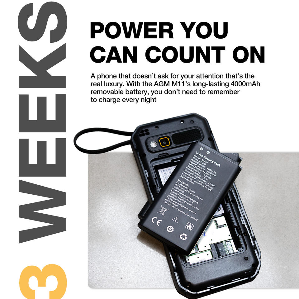 Batterie externe étanche RTS AGM M11 4000mAh TikTok Youtube Wifi Hotspot Double SIM FM SOS IP68 IP69K Étanche Téléphone à clavier 4G