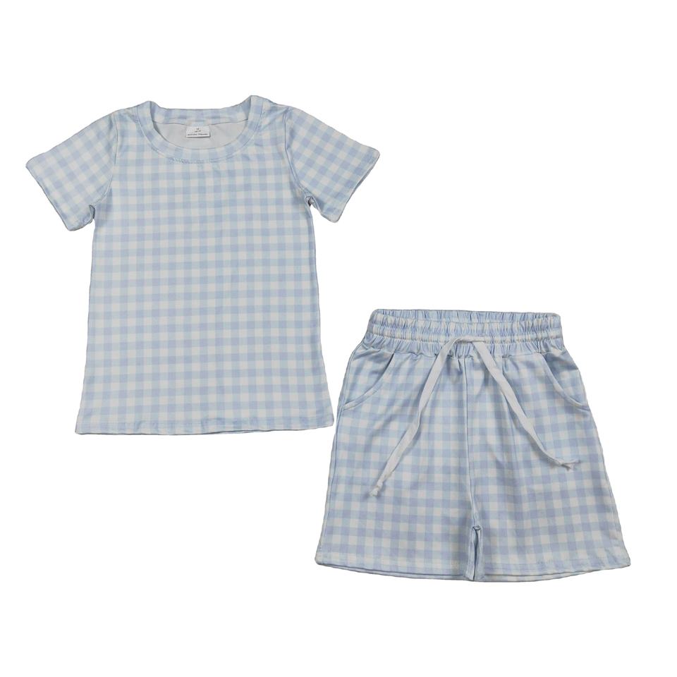 Ensemble de vêtements pour bébé garçon RTS Boutique, t-shirt et short en coton et élasthanne/polyester à carreaux de couleur unie, décontracté, 2 pièces, printemps-automne